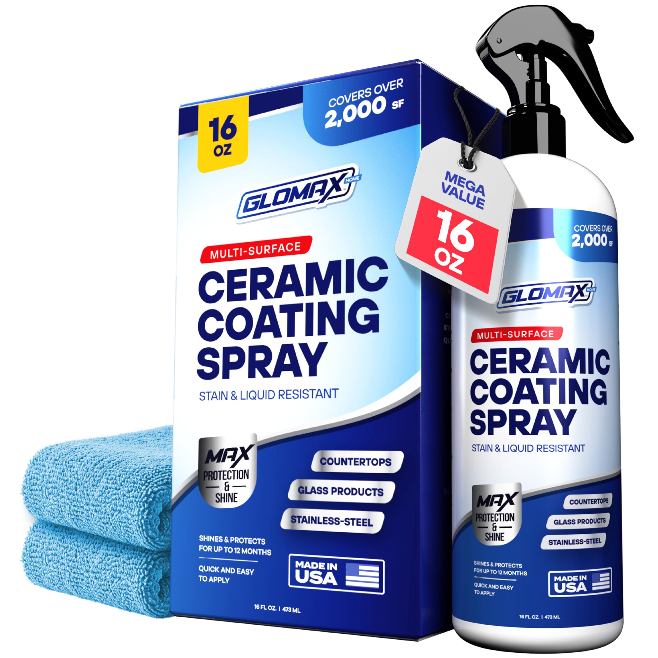 GLOMAX Home Ceramic Coating Spray Kit (16 oz) - Shine, Seal & Protect Stainless Steal, Glass, Kitchen & Bath Surfaces - Extremely Hydrophobic - Repels Stains & Grime - Includes 2 Micro Fiber Towels