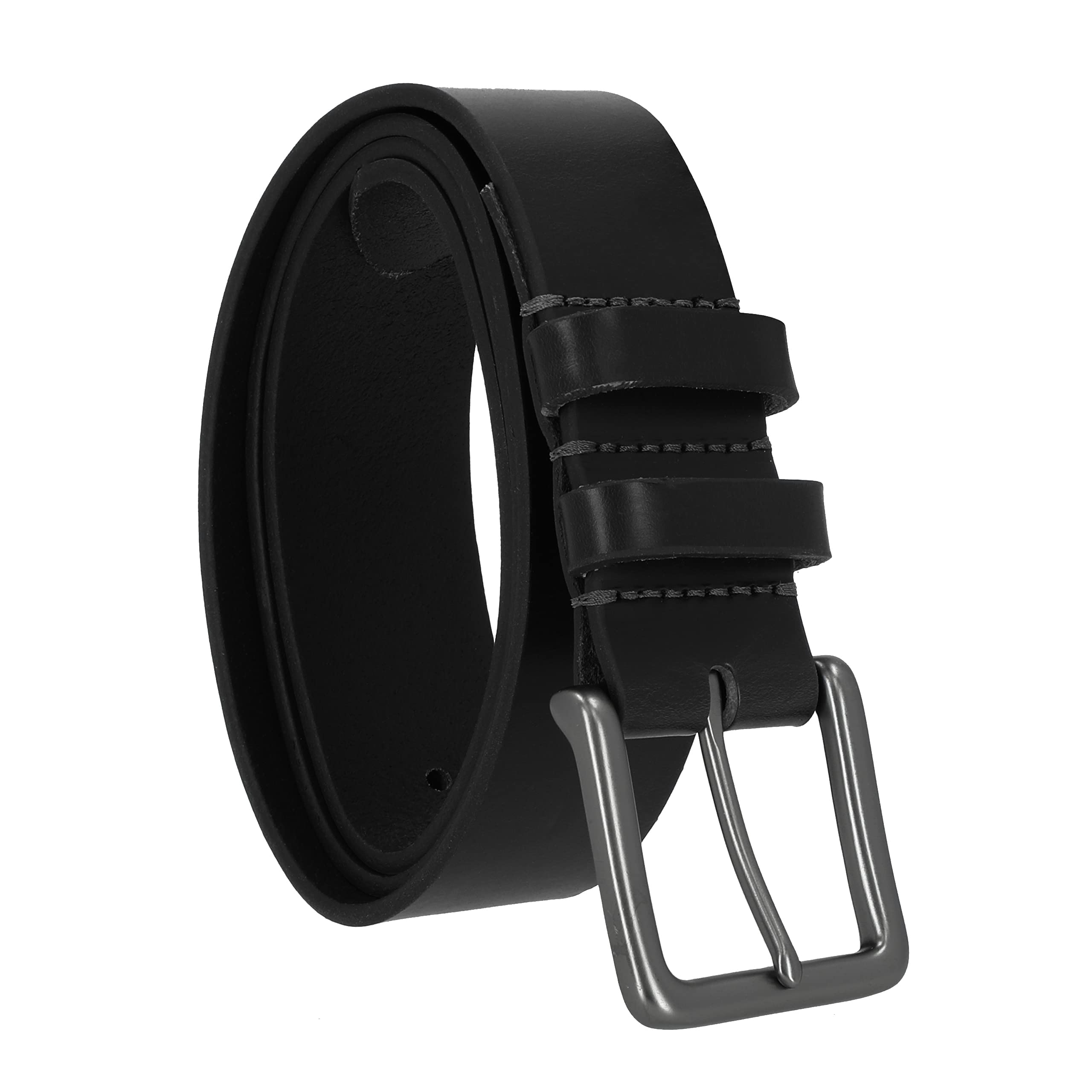 Men’s Classic Leather Belt, Double Prong Retro Style, Antique Nickel Buckle, 1 ½” Width, Amish handmade in the USA