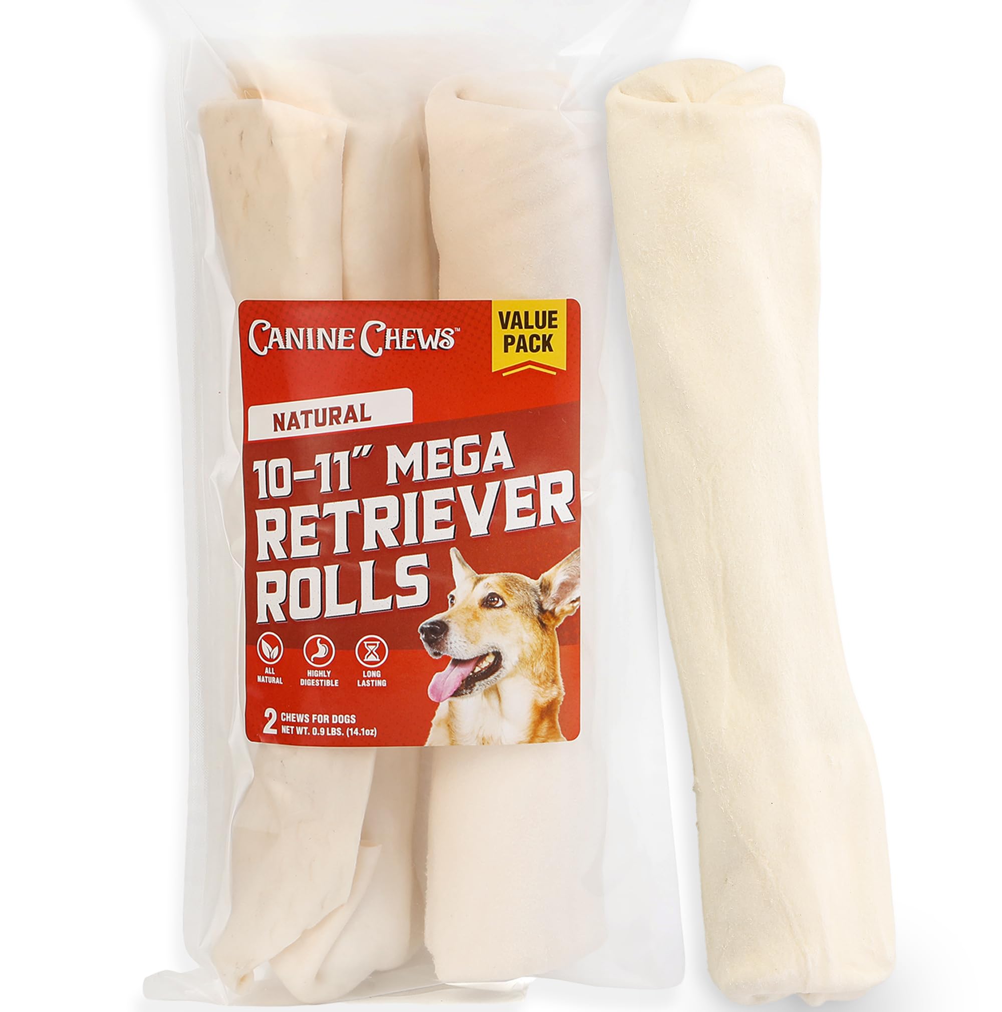 Canine Chews 10-11" MEGA Retriever Rolls (2 Pack) Natural Rawhide for Big Dogs - Long-Lasting Dog Chew Treats for Aggressive Chewers - Odor-Free - Extra-Large