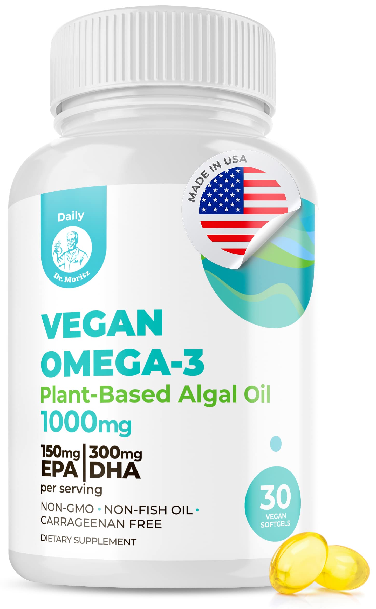 DR. MORITZ Vegan Omega 3 DHA & EPA Supplement - Algae Omega-3 Fatty Acids 1000mg - Fish Oil Alternative for Heart, Brain, Joint, Immune System Support 30 Count(Pack 1)