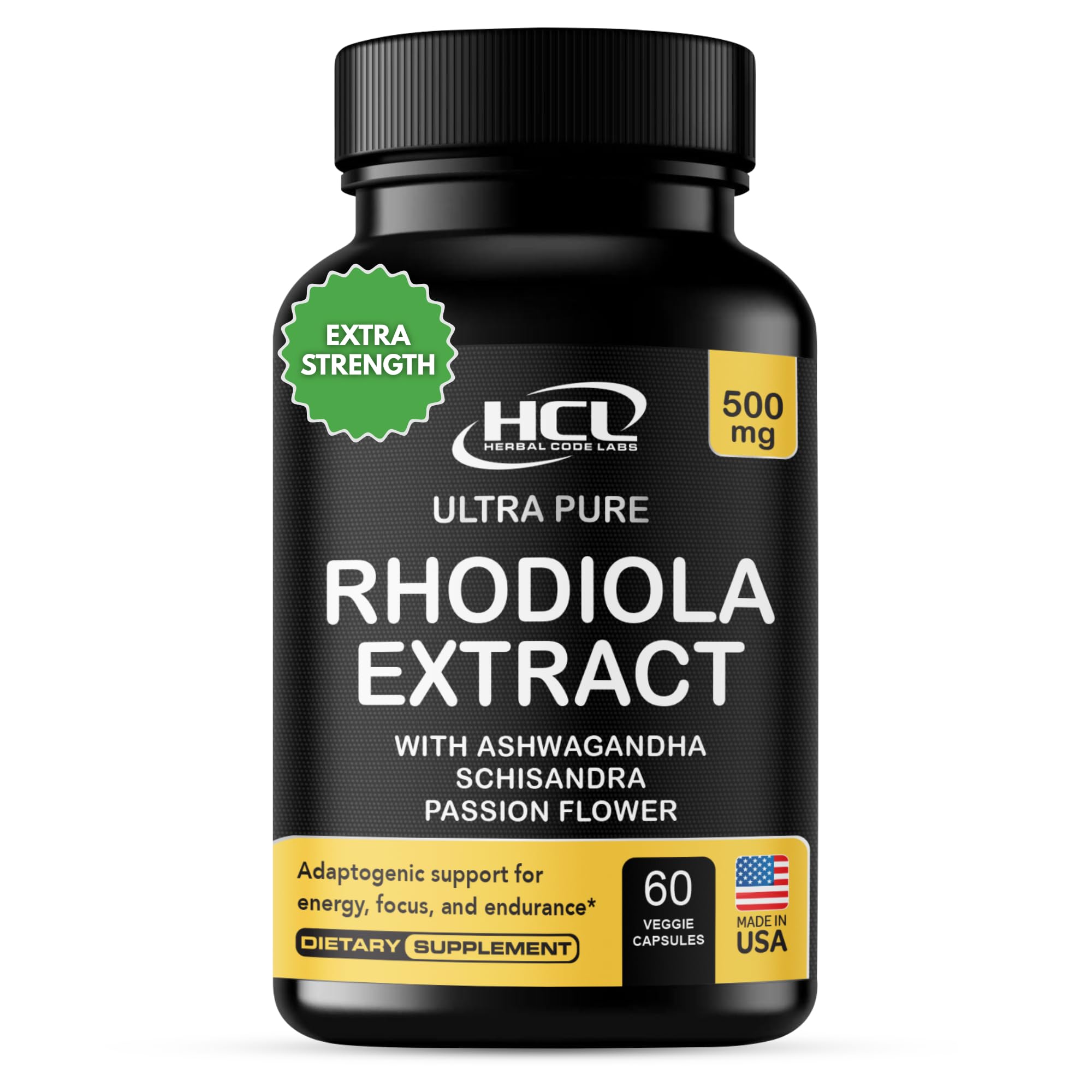 Rhodiola Rosea Supplement High Potency Extract 500mg - 3% Rosavins 1% Salidrosides with Ashwagandha Shisandra Passion Flower Herb Powder Capsules - Natural Way to Relieve Stress - Pills for Energy