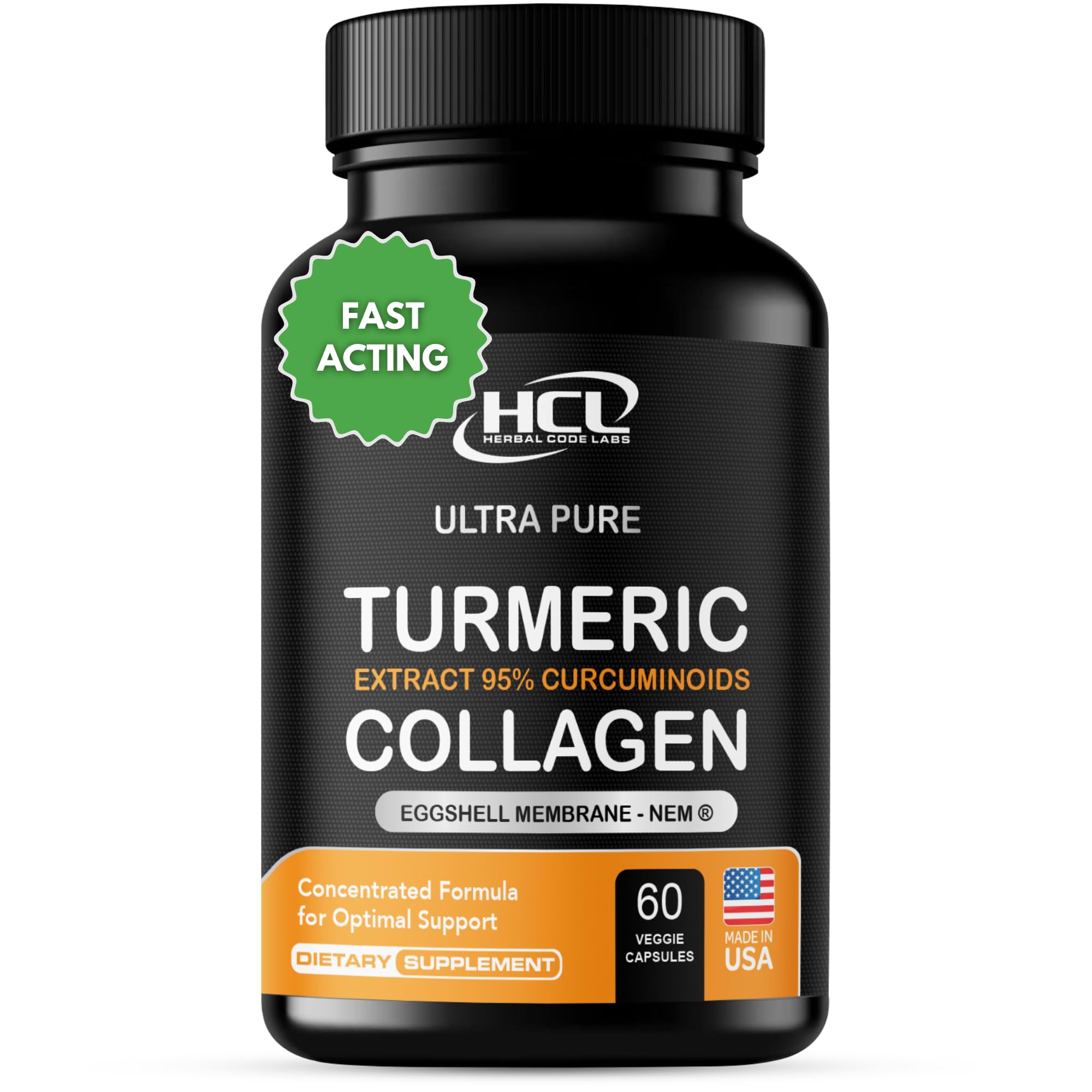 Turmeric Curcumin 95% Extract & Collagen Capsules - NEM Promotes Knee Comfort & Flexibility - Eggshell Membrane w Naturally Occurring Glucosamine Chondroitin Hyaluronic Acid- Made in USA