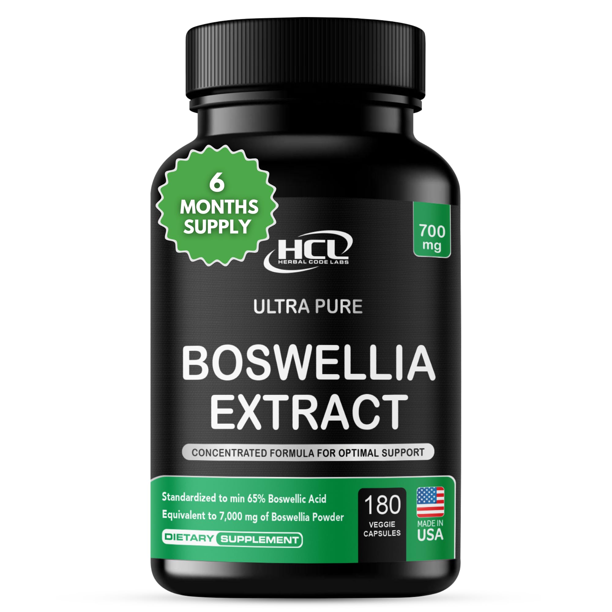 HCL HERBAL CODE LABS Boswellia Serrata Extract Capsules 65% Boswellic Acid 700mg Equal to 7000mg Resin Powder, Extra Strength & Superior Absorption, 6 Month Supply 180 Vegan Capsules Non-GMO