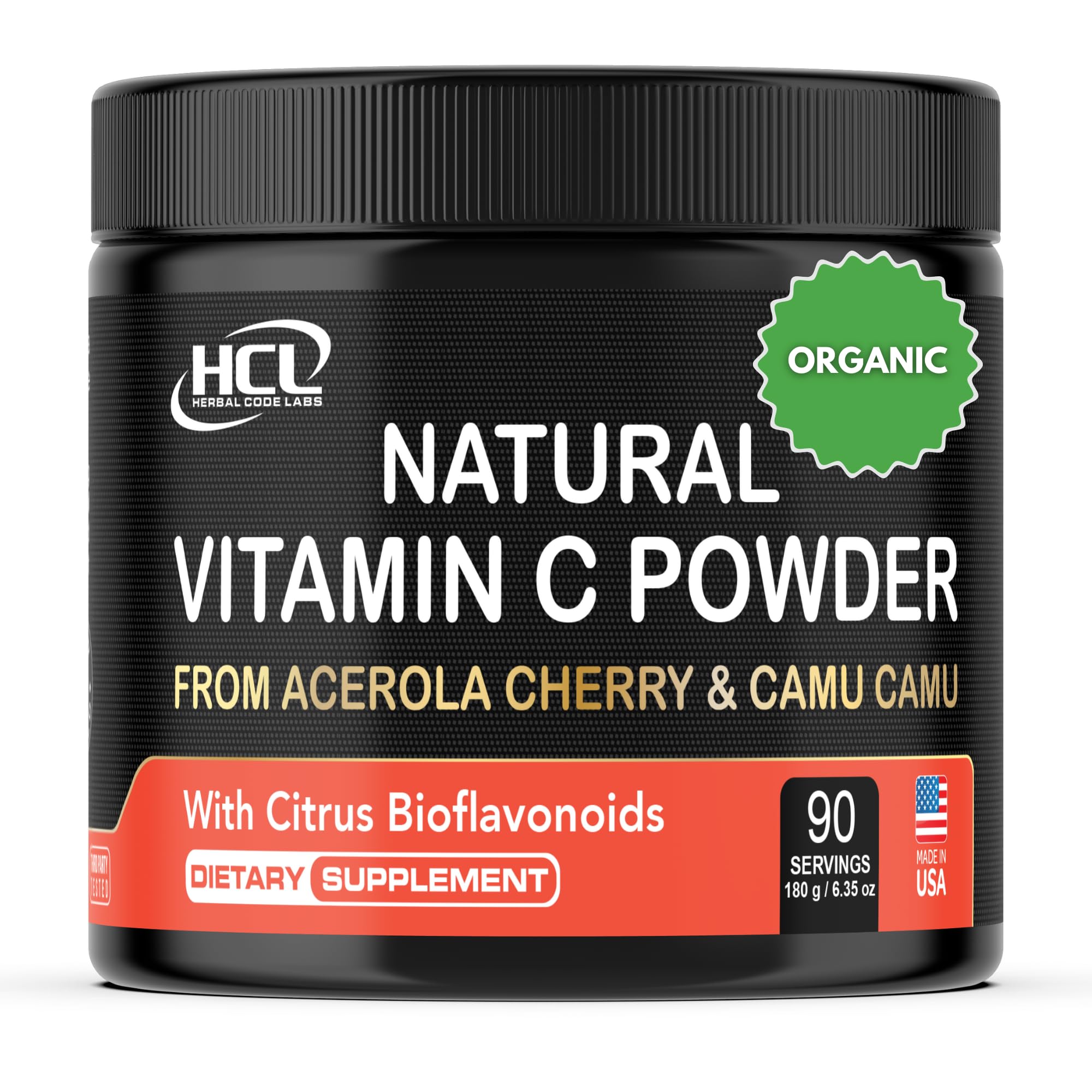 Natural Vitamin C from Organic Acerola Cherry & Camu Camu Powder - High Absorption with Citrus Bioflavonoids - Immune System & Collagen Booster - Anti Aging Skin Vitamins Made in USA 90 servings
