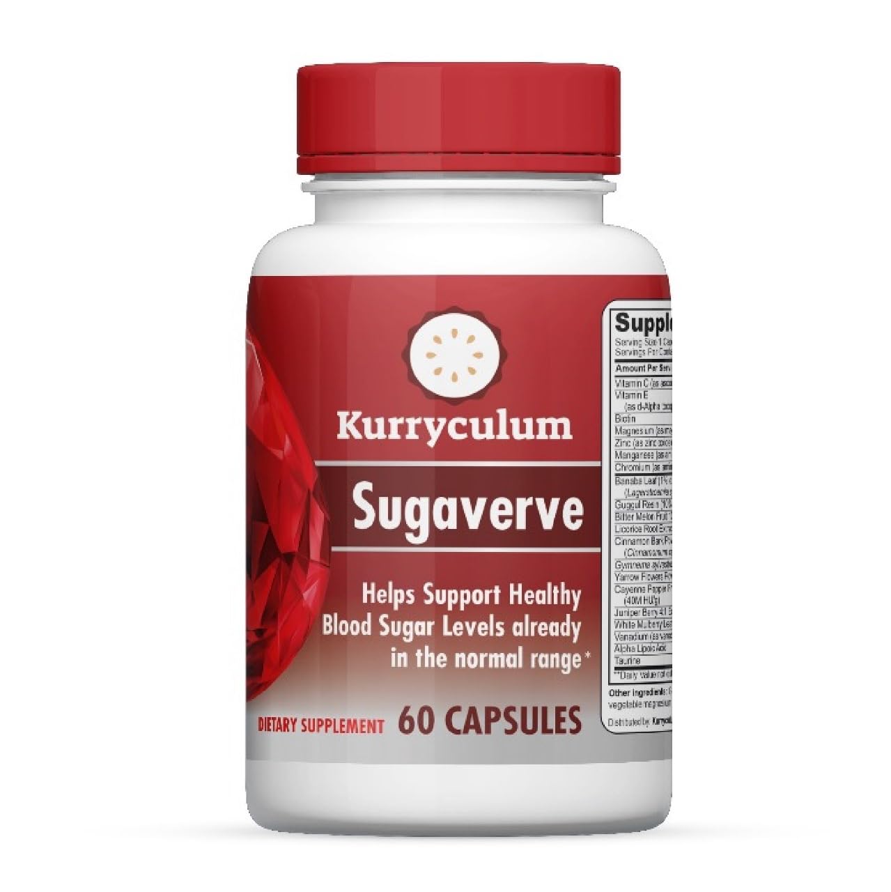 Kurryculum Sugaverve Supplement–Supports Healthy Levels Already Within Normal Range – Includes Bitter Melon Extract, Vanadium, Chromium, Cinnamon, & Alpha Lipoic Acid-60 Capsules