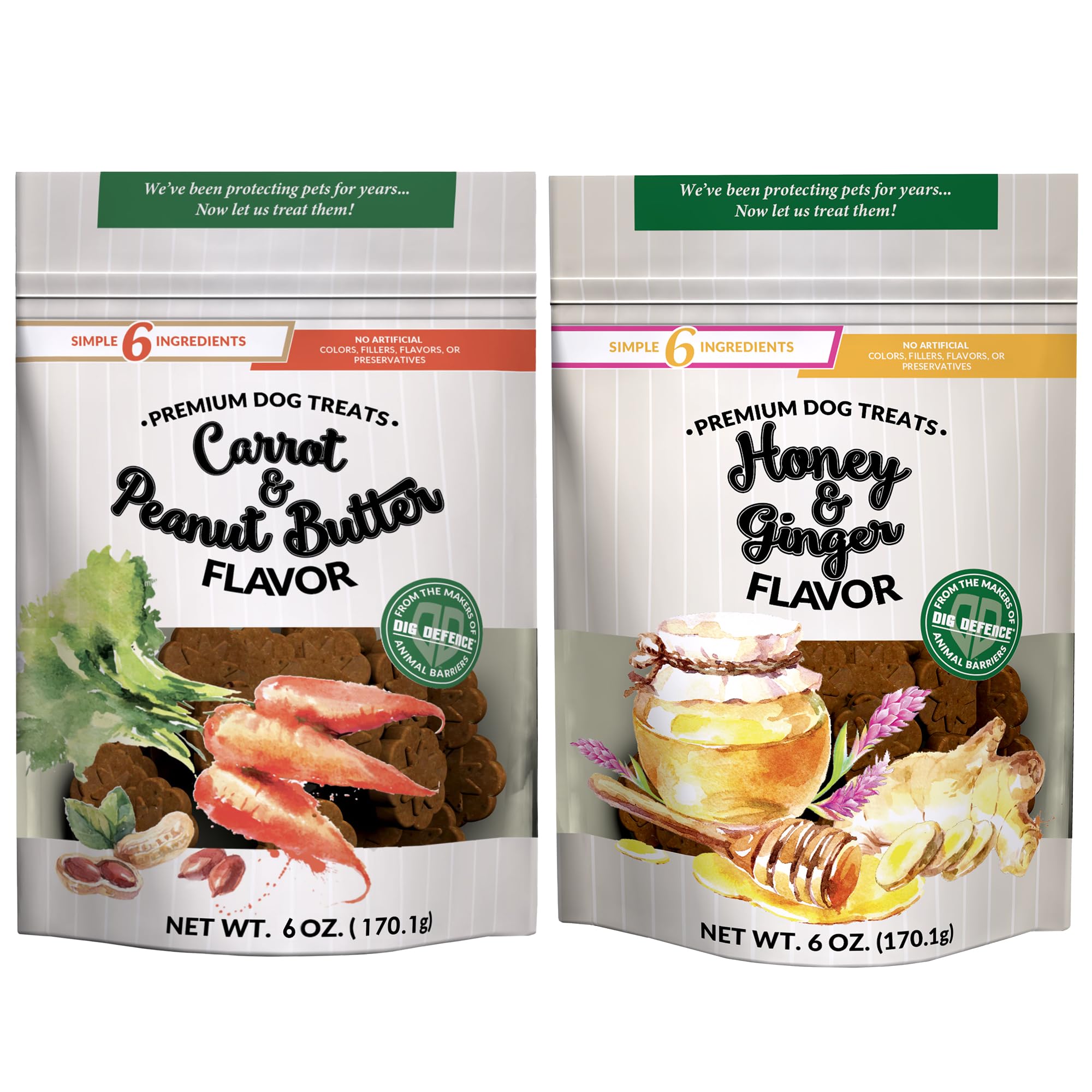 Dig Defence Premium Dog Treats - Honey/Ginger and Carrot/Peanut Butter, Natural Ingredients, Baked Gourmet Snacks for Small & Big Dogs, Healthy Training Treat, 2 Pack