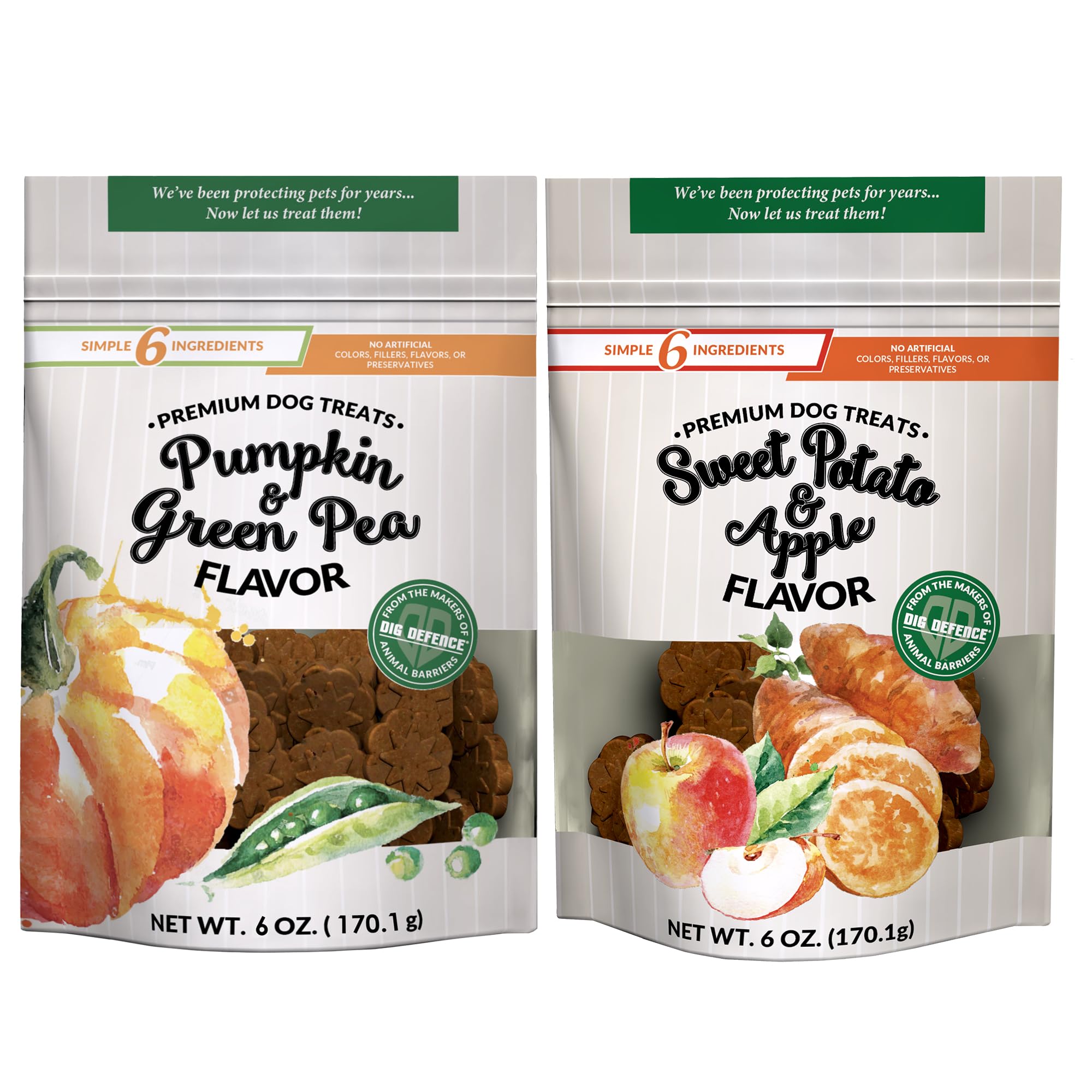 Dig Defence Premium Dog Treats - Pumpkin/Green Pea and Sweet Potato/Apples, Natural Ingredients, Baked Gourmet Snacks for Small & Big Dogs, Healthy Training Treat, 2 Pack