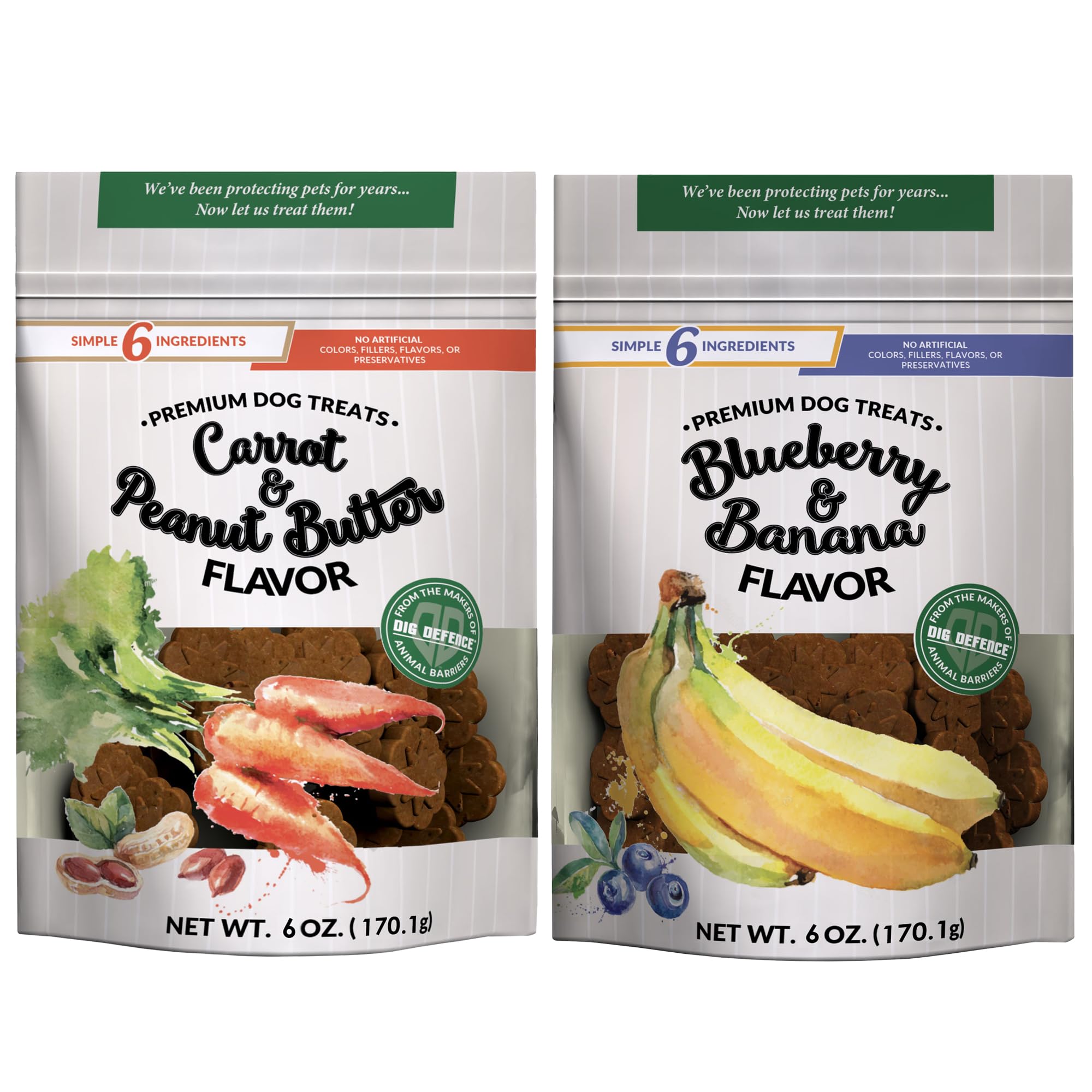 Dig Defence Premium Dog Treats - Carrot/Peanut Butter and Blueberry/Banana, Natural Ingredients, Baked Gourmet Snacks for Small & Big Dogs, Healthy Training Treat, 2 Pack