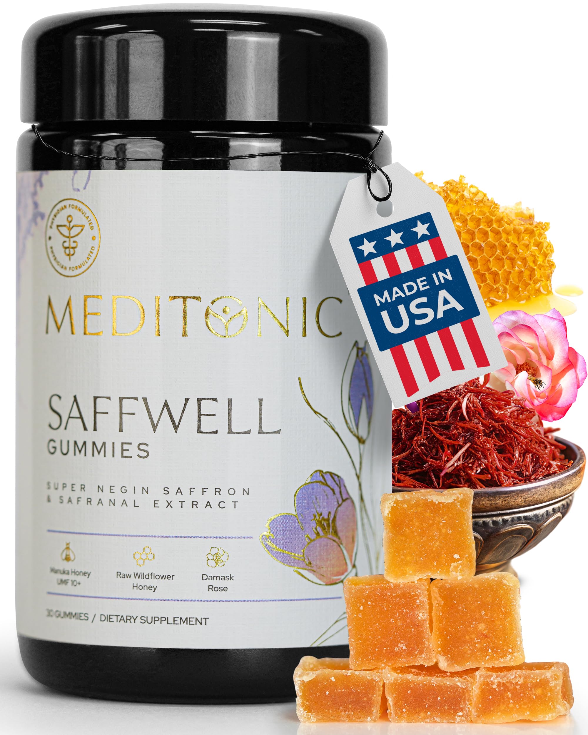 MEDITONIC™ Saffwell Gummies | Super Negin SAFFRON & Safranal | Mood, Vision, Focus Enhancer | 30 Premium U.S Made Gummies | Guranteed Superior American Made Quality