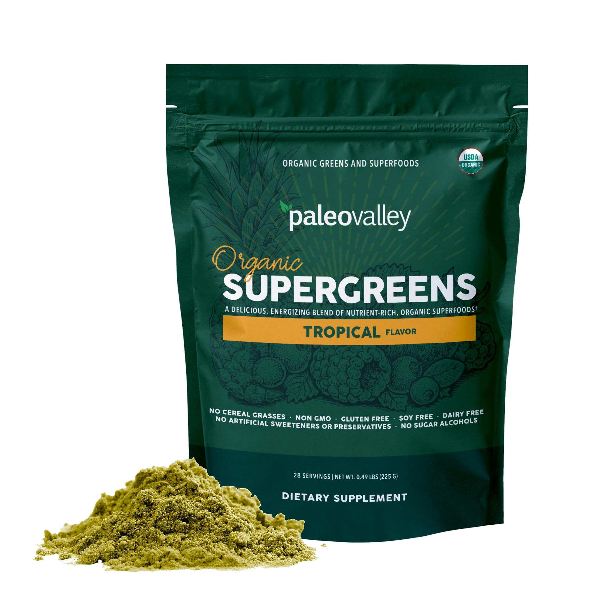 Paleovalley Organic Supergreens Powder - 23 Superfoods with Prebiotic Fiber for Energy and Immunity Support - No Cereal Grasses for Maximum Absorption - Tropical, 30 Servings