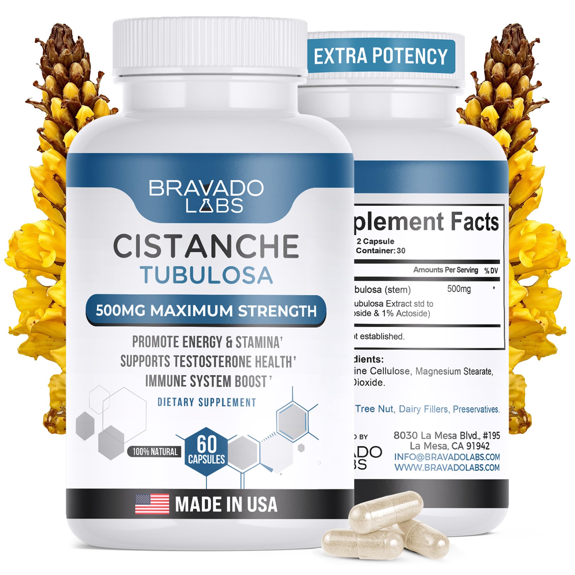 Bravado Labs Cistanche Tubulosa Supplement Men 500 mg - Testosterone Booster for Men - Promotes Strength, Mood, Energy, Focus, Hormone Support - Cistanche Tubulosa Extract Powder - 60 ct