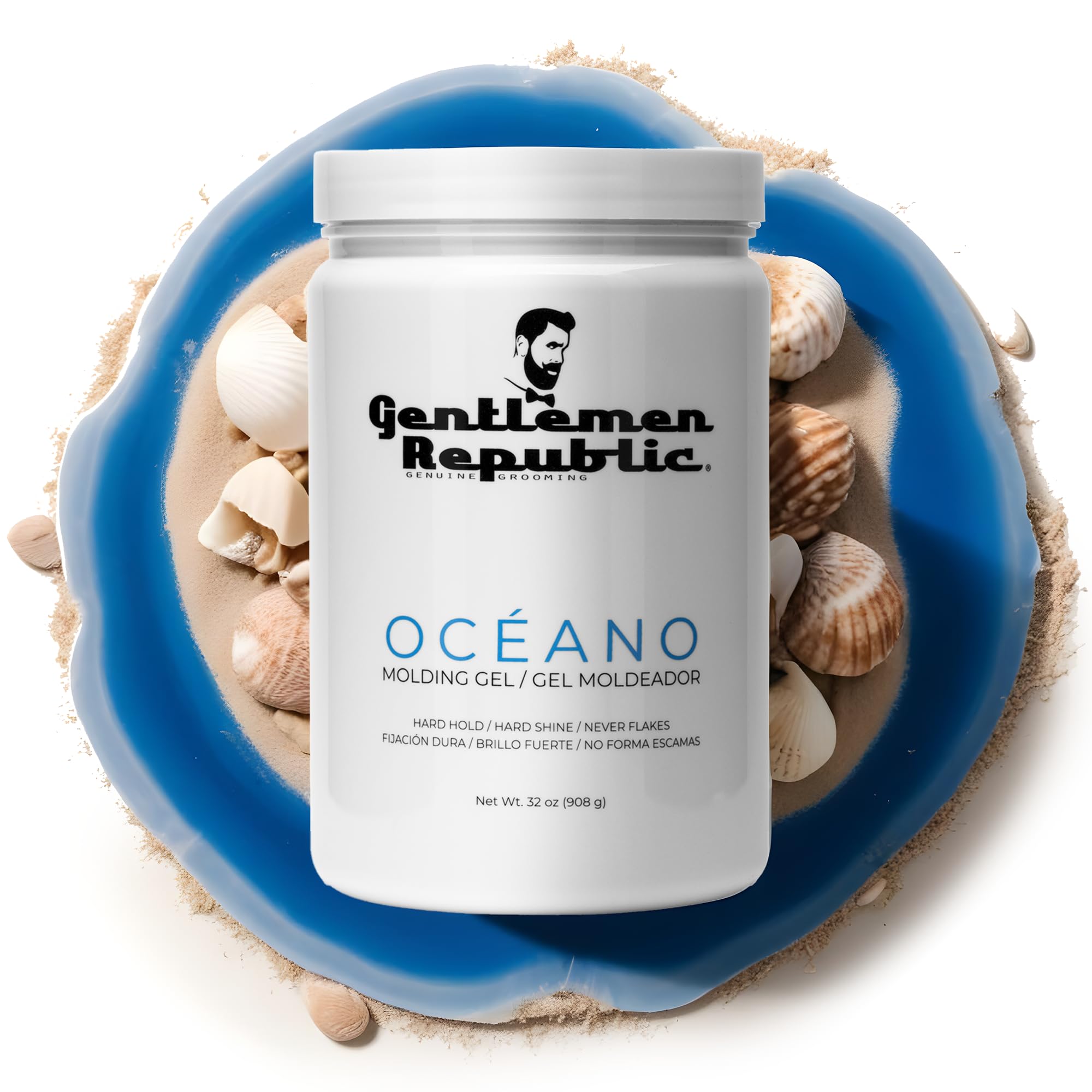 Gentlemen Republic Oceano Men's Hair Gel 32oz - Strong Touchable Hold and High Shine Styling Gel for Hair, 100% Alcohol-Free Professional Formula with Fresh Scent, Mens Hair Product Made in USA