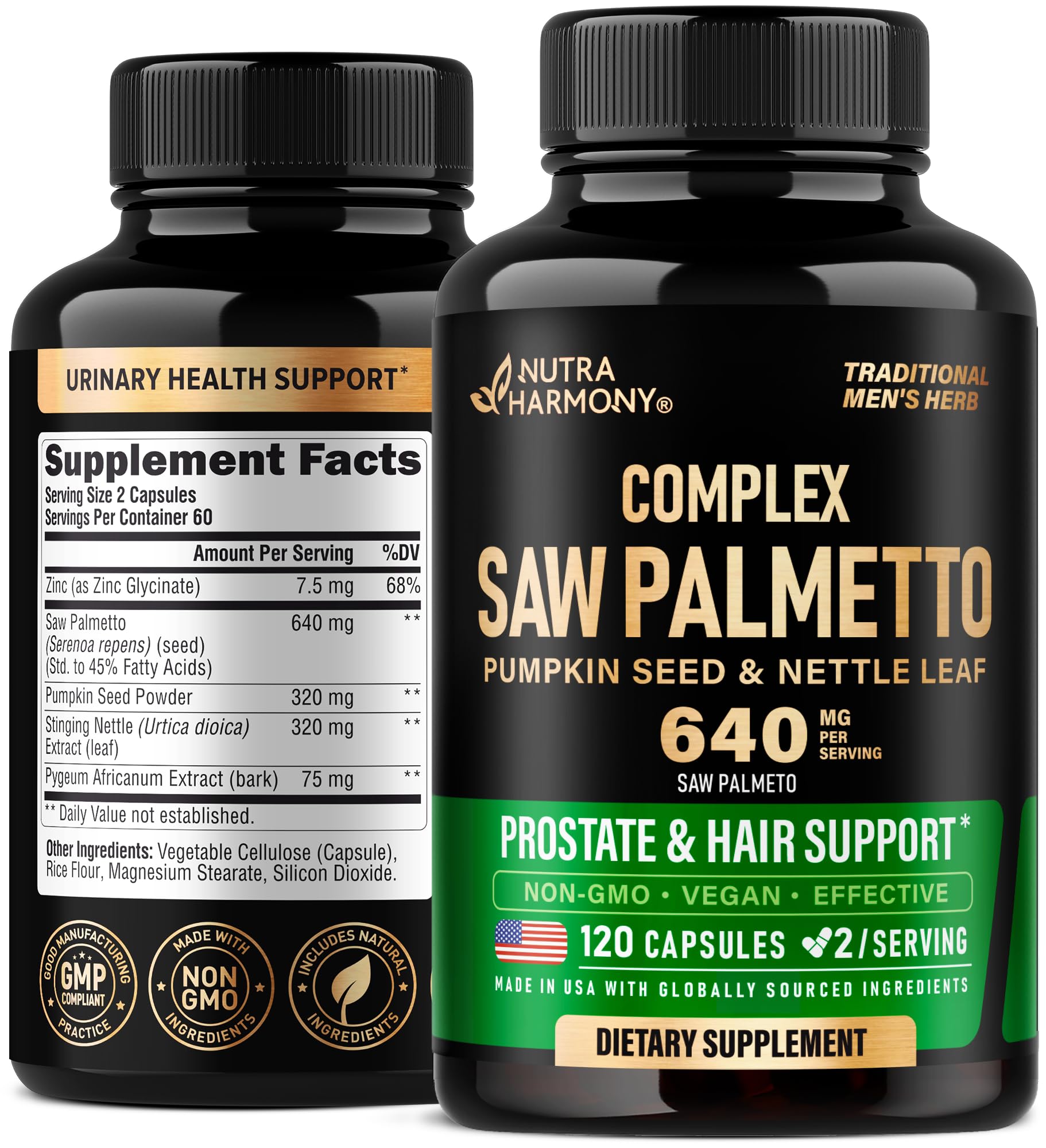 Saw Palmetto for Men 640mg - Pumpkin Seed | Nettle | Zinc & Pygeum - Prostate Health & Urinary Supplement - DHT Blocking & Hair Support - 45% Fatty Acids, Clinical Strength - Made in USA, 120 Capsules