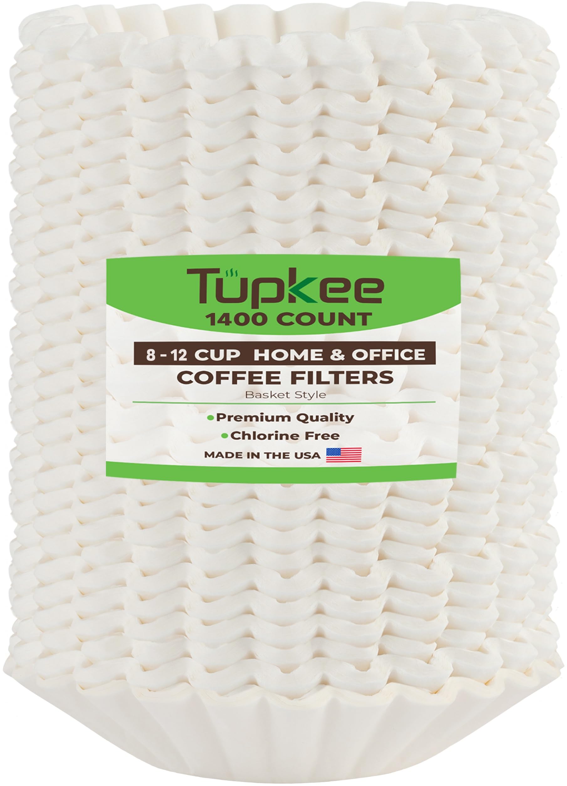 Tupkee Coffee Filters 8-12 Cups - 1400 Count, Basket Style, White Paper, Chlorine Free Coffee Filter, Made in the USA