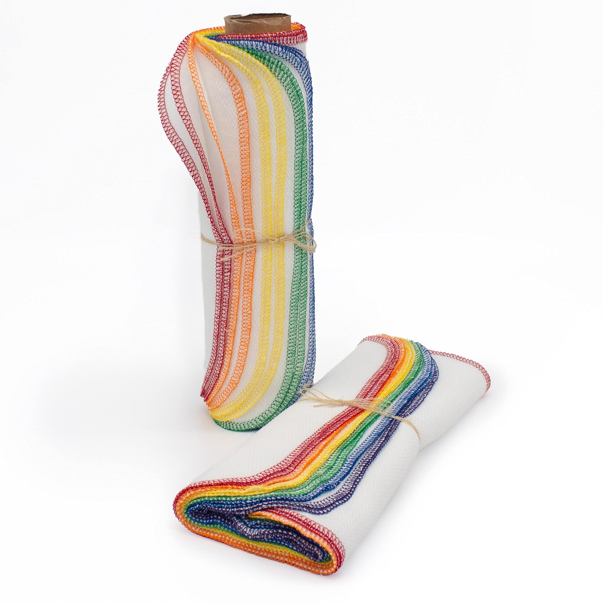 Rainbow Colored Paperless Towels - One Dozen Eco Friendly Birdseye Cotton Sustainable Reusable Paper Towels, zero waste kitchen products Made in the USA (Bright White)