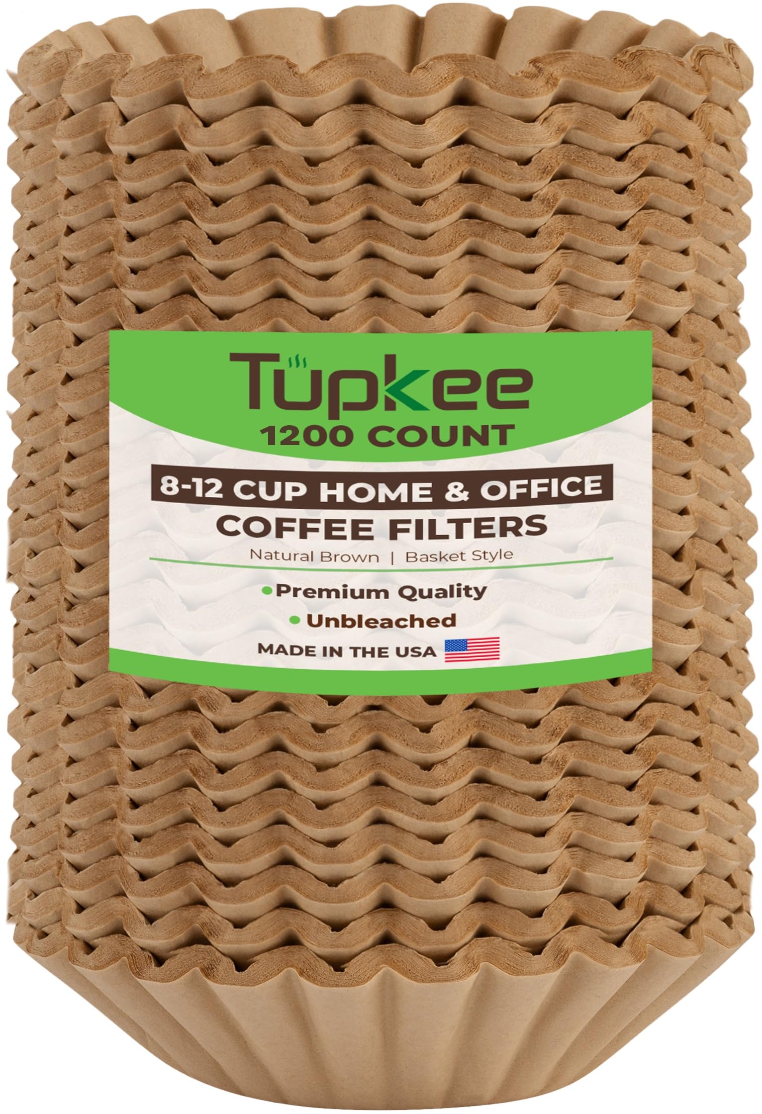 Tupkee Coffee Filters 8-12 Cups - 1200 Count, Basket Style, Natural Brown Unbleached Coffee Filter, Made in the USA