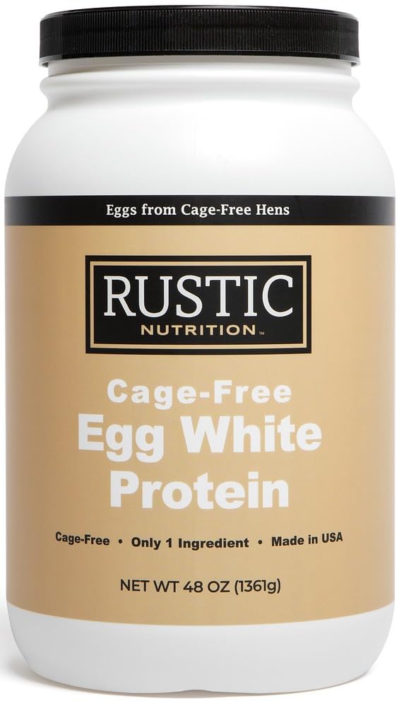 Rustic Nutrition, Cage-Free Egg White Protein Powder, Made in USA from Humanely-Raised Cage-Free Eggs, Only 1 Ingredient, Dried Egg Whites (Unflavored, 48 Oz)