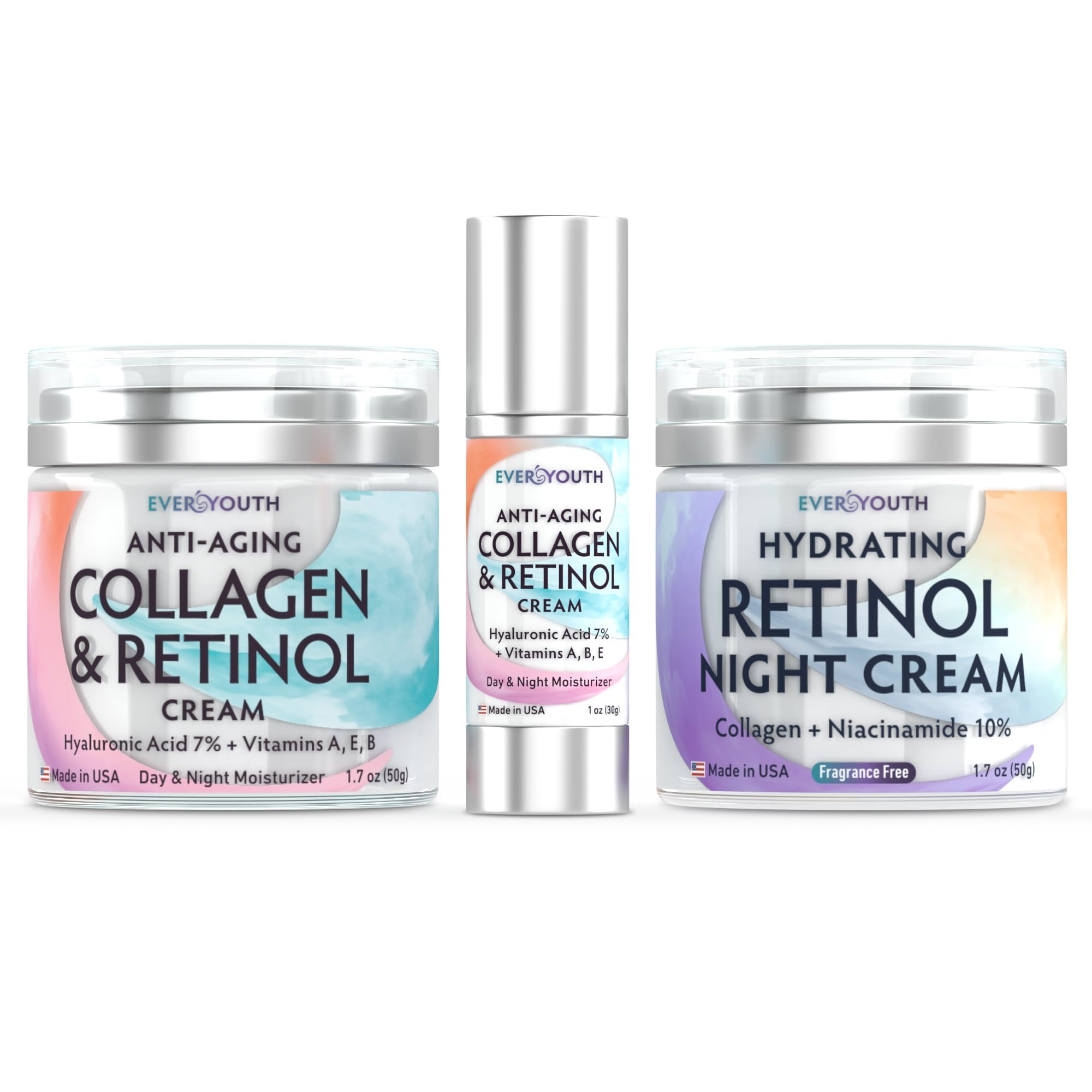 Brand: EVERYOUTHFeatures: Complete Skincare Bundle Face Moisturizer Day & Night Cream Bundle Collagen, Retinol, Hyaluronic Acid & Niacinamide Natural Ingredients...