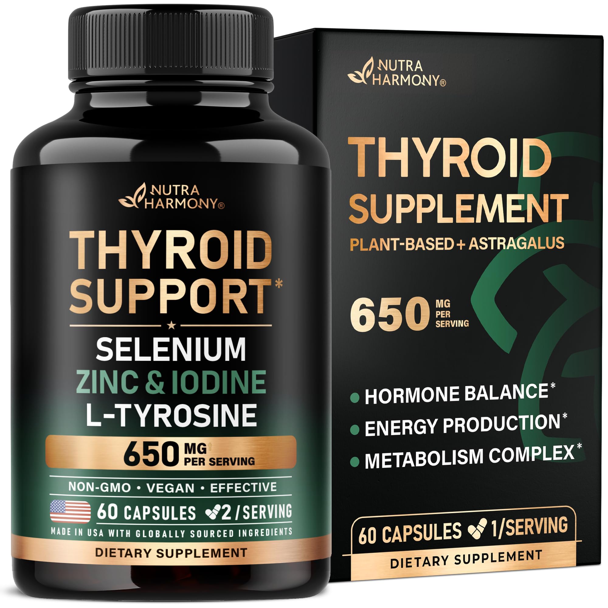 Thyroid Support for Women - Astragalus | Selenium 200 mcg | Zinc & Iodine | L-Tyrosine | Adaptogen Herbs - 21-in-1 Antioxidant & Immune Support - Vegan, Non-GMO, Lab Tested - 60 Capsules, Made in USA
