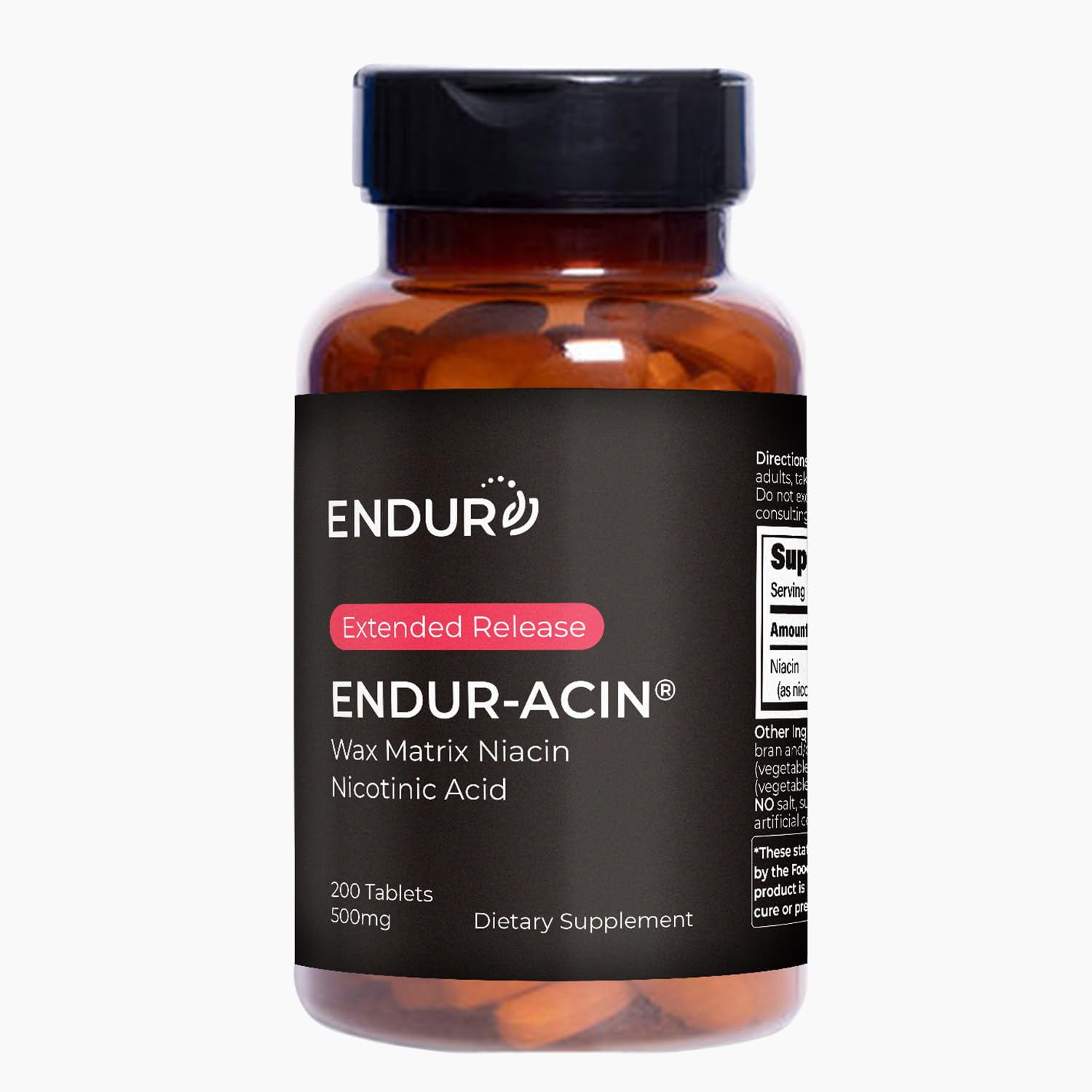 Brand: Endurance ProductsColor: WhiteFeatures: Low-Flush Niacin Formula: Each Endur-Acin tablet delivers 500mg of nicotinic acid (Vitamin B3) in an extended-release...