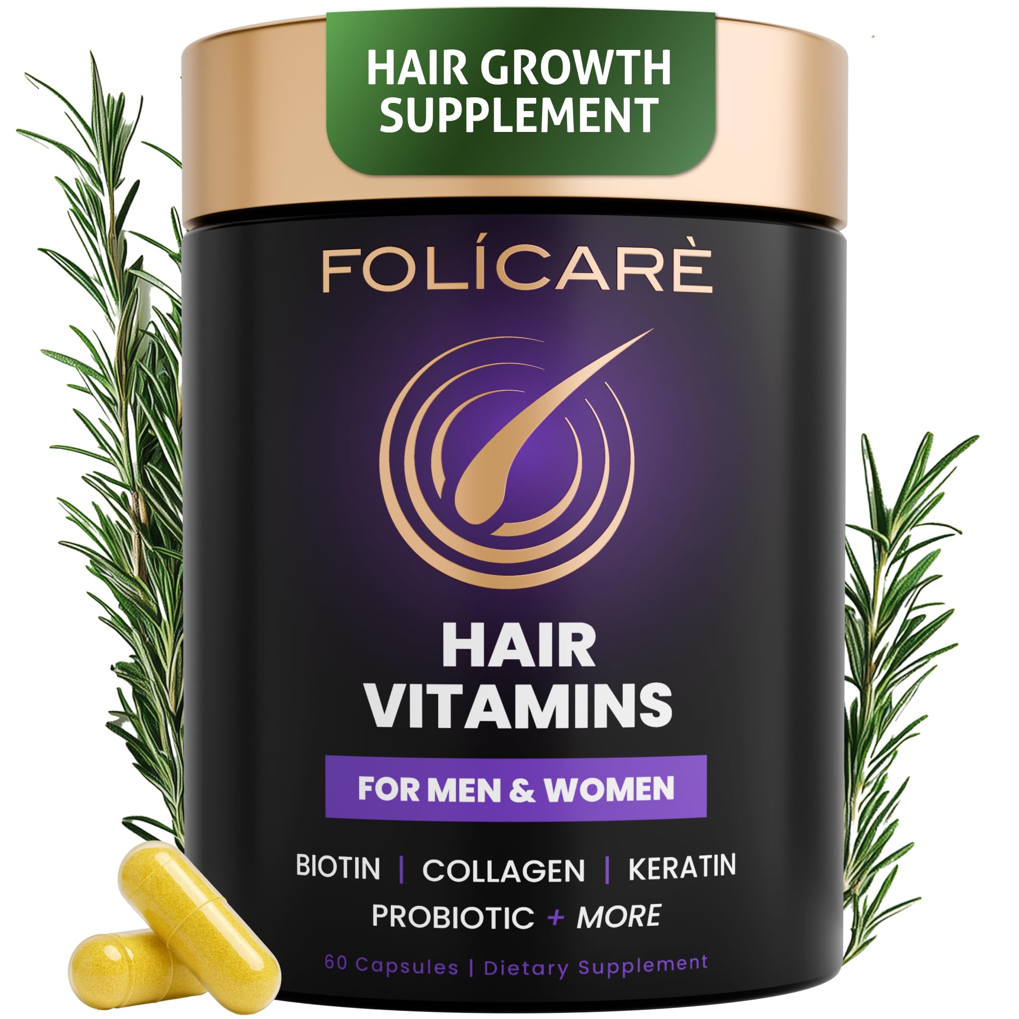 FOLICARE Hair Skin and Nails Vitamins for Women & Men, w/Biotin to Support Healthy Hair, Biotin Supplement Pills w/Collagen + Keratin + Probiotics - Made in USA