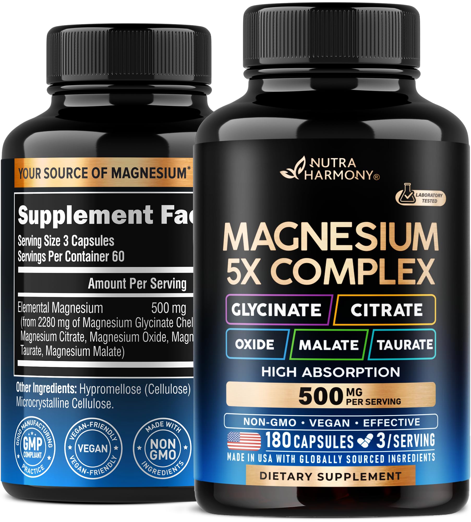 Brand: NUTRAHARMONYFeatures: 5-in-1 Magnesium Supplement — Discover the ultimate Magnesium blend! Our 5-in-1 Magnesium complex is an unrivaled blend of...