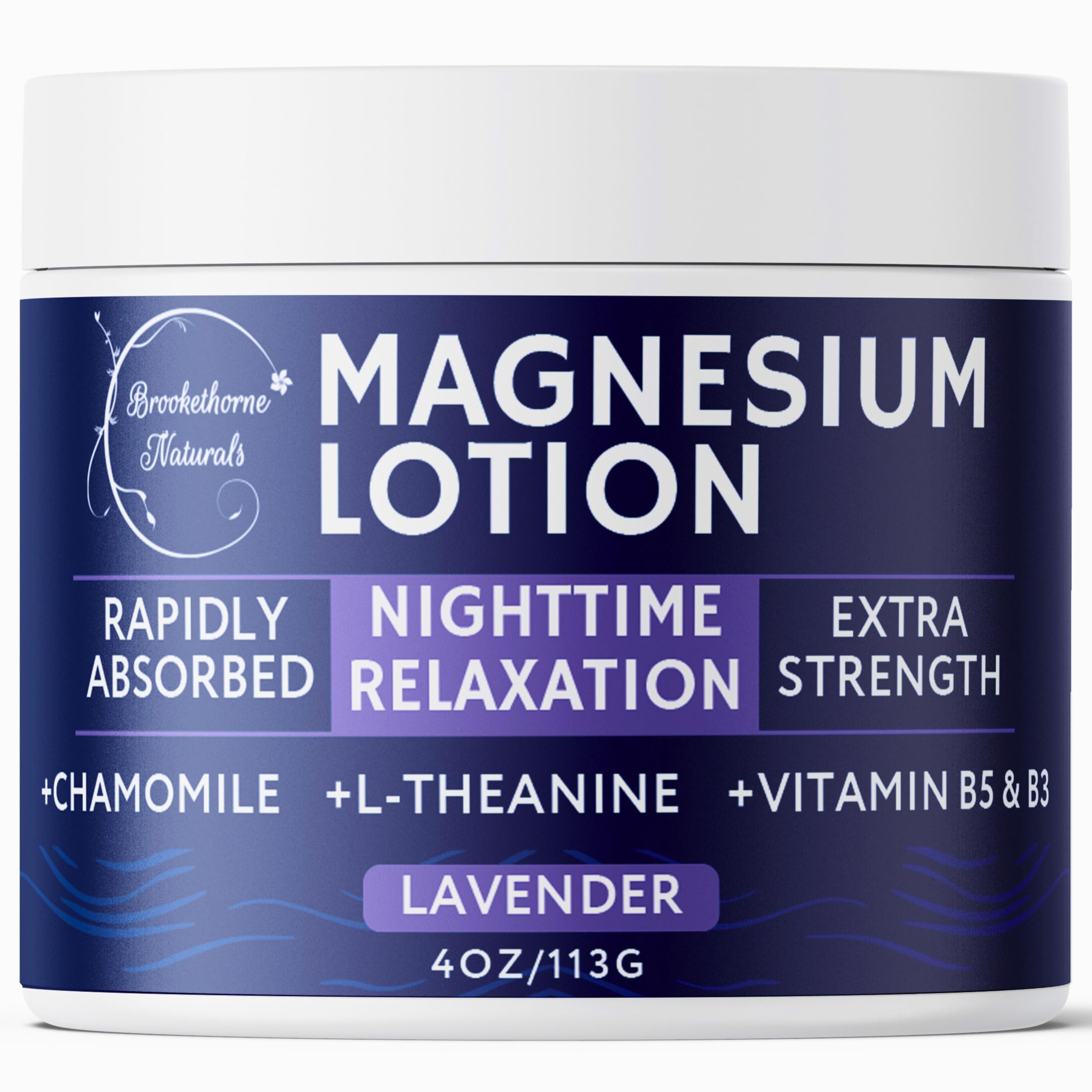 Brookethorne Naturals Nighttime Magnesium Lotion for Sleep | Lavender Magnesium Cream with L-Theanine & Chamomile | Topical Cream for Relaxation Adults & Kids | Non-Greasy, Vegan, Made in USA | 4oz