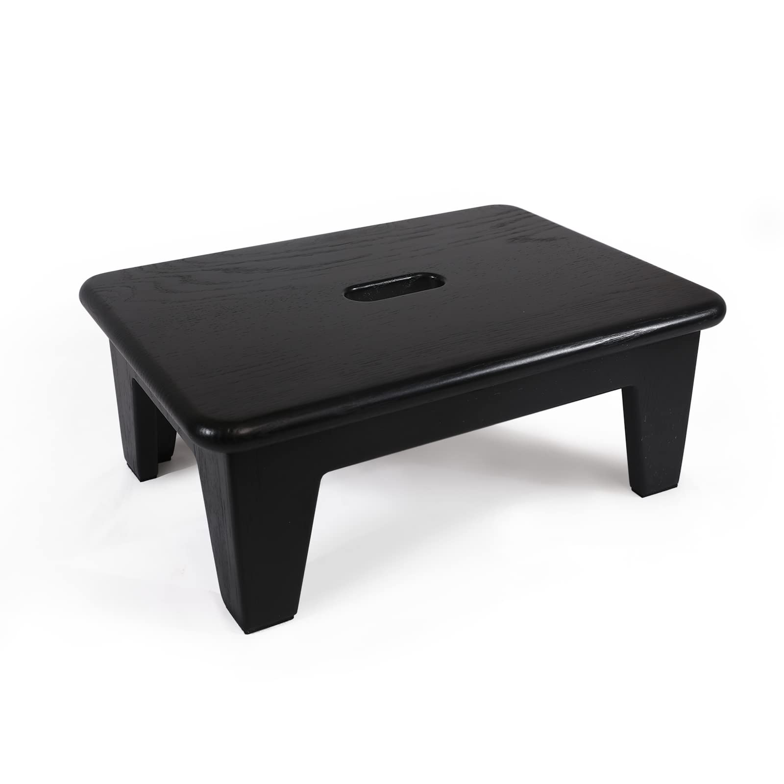 CONSDAN Step Stool for Bed - USA Grown Oak, Wooden Stool for Adults and Seniors, 6.5" High, Non-Slip Mat, No Assembly Needed, Solid Wood, Black Color