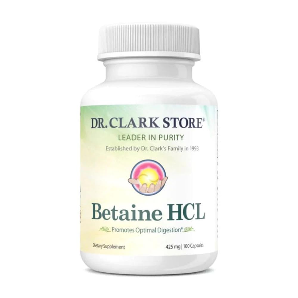 Dr. Clark Betaine HCL Digestive Enzymes - Acid Reflux Medicine, Hydrochloric Acid Protein Supplement, Optimal Digestion Formula, 100 Gelatin Capsules, 425 mg