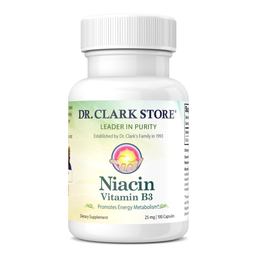 Dr. Clark Niacin (Vitamin B3) Supplement – 25mg, 100 Gelatin Capsules, Supports Circulation & Healthy Cholesterol Levels
