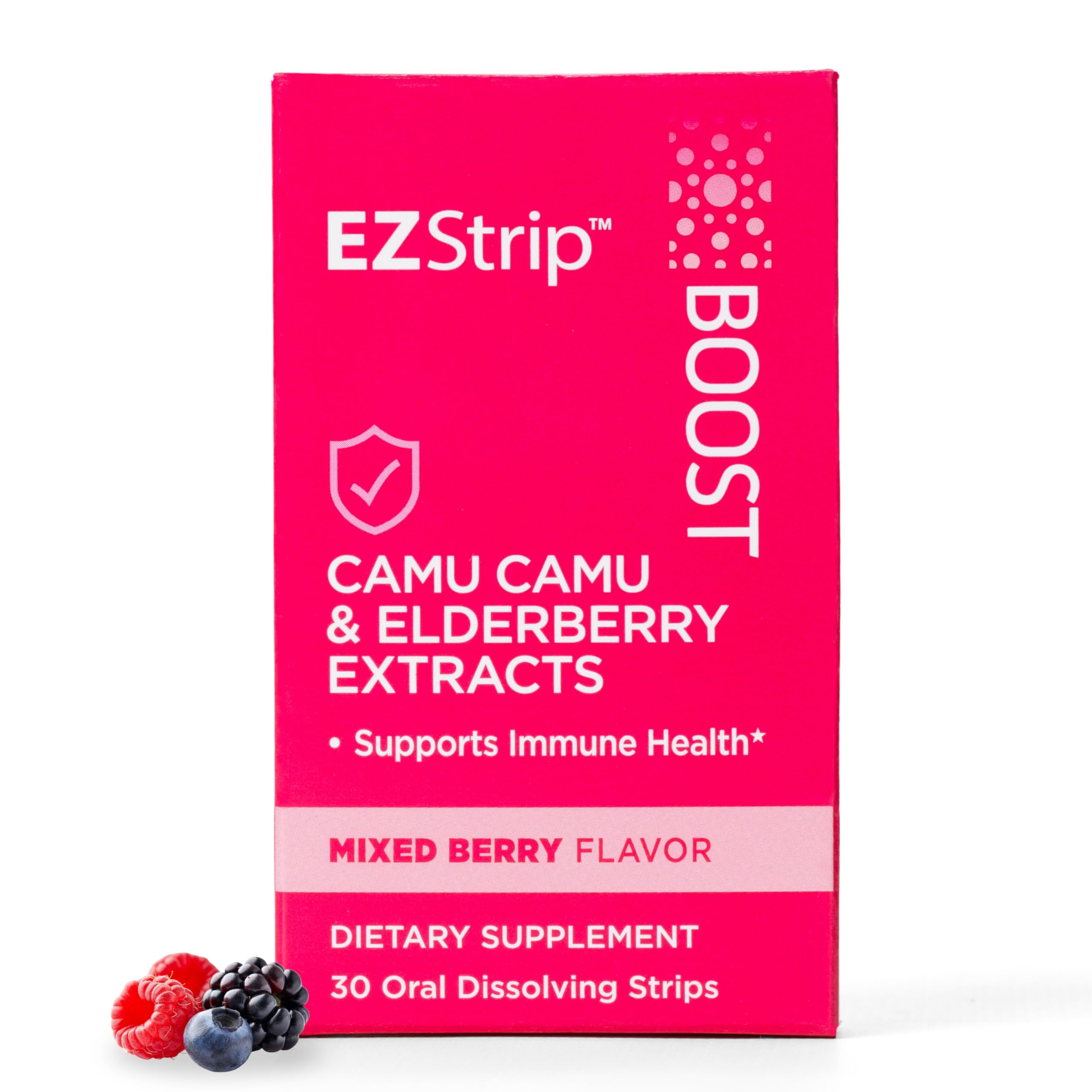 EZStrip Boost Immune Support Supplement - Mixed Berry Flavor, 30 Count - Dissolving Strips with Camu Camu and Elderberry to Help Support Immune Health - Made in The USA, Sugar and Gluten-Free