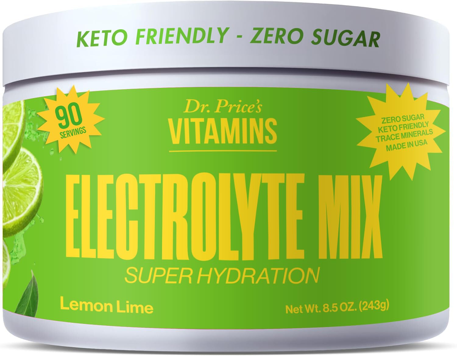 Dr. Price’s Electrolyte Mix | Sugar-Free Hydration Powder with 72+ Trace Minerals | No Sugar, Fast-Dissolving Electrolytes Powder Packets | Lemon-Lime, 90 Servings