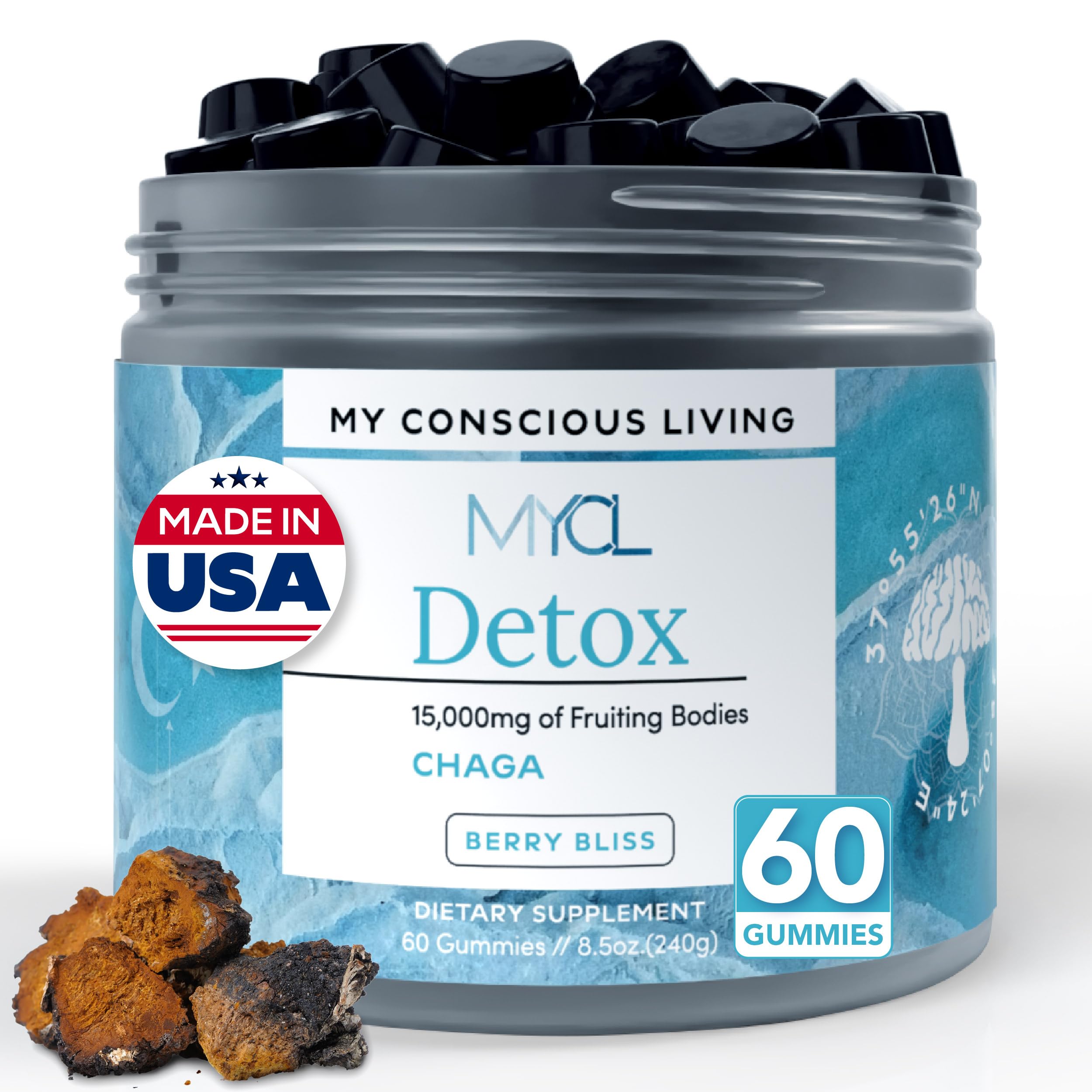 MYCL Detox Chaga Mushroom Gummies – Antioxidant & Immune Support Supplement – 250mg Fruiting Bodies – Vegan, Gluten-Free – Blueberry Lemonade Flavor – 60 Count