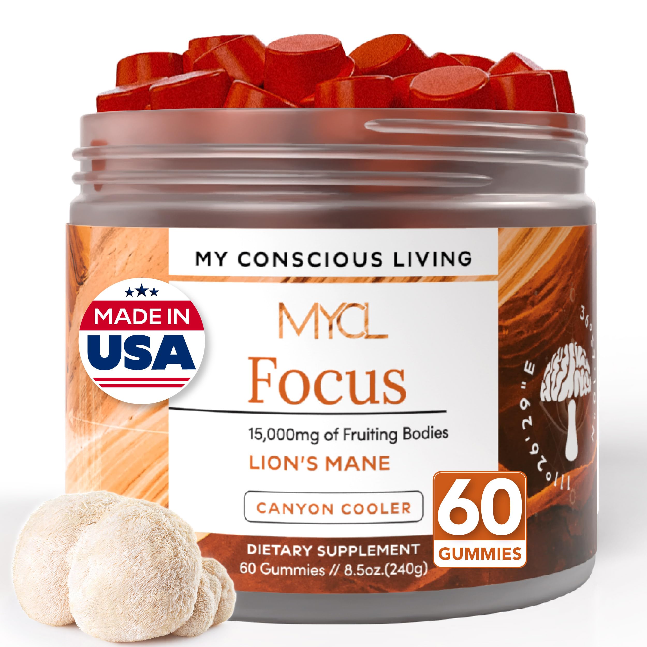 Lion’s Mane Mushroom Gummies for Focus, Memory & Clarity | 500mg Fruiting Body Extract per Serving | Brain Health & Cognitive Support | Organic, Vegan, Gluten-Free | Canyon Cooler Flavor | 30 Servings