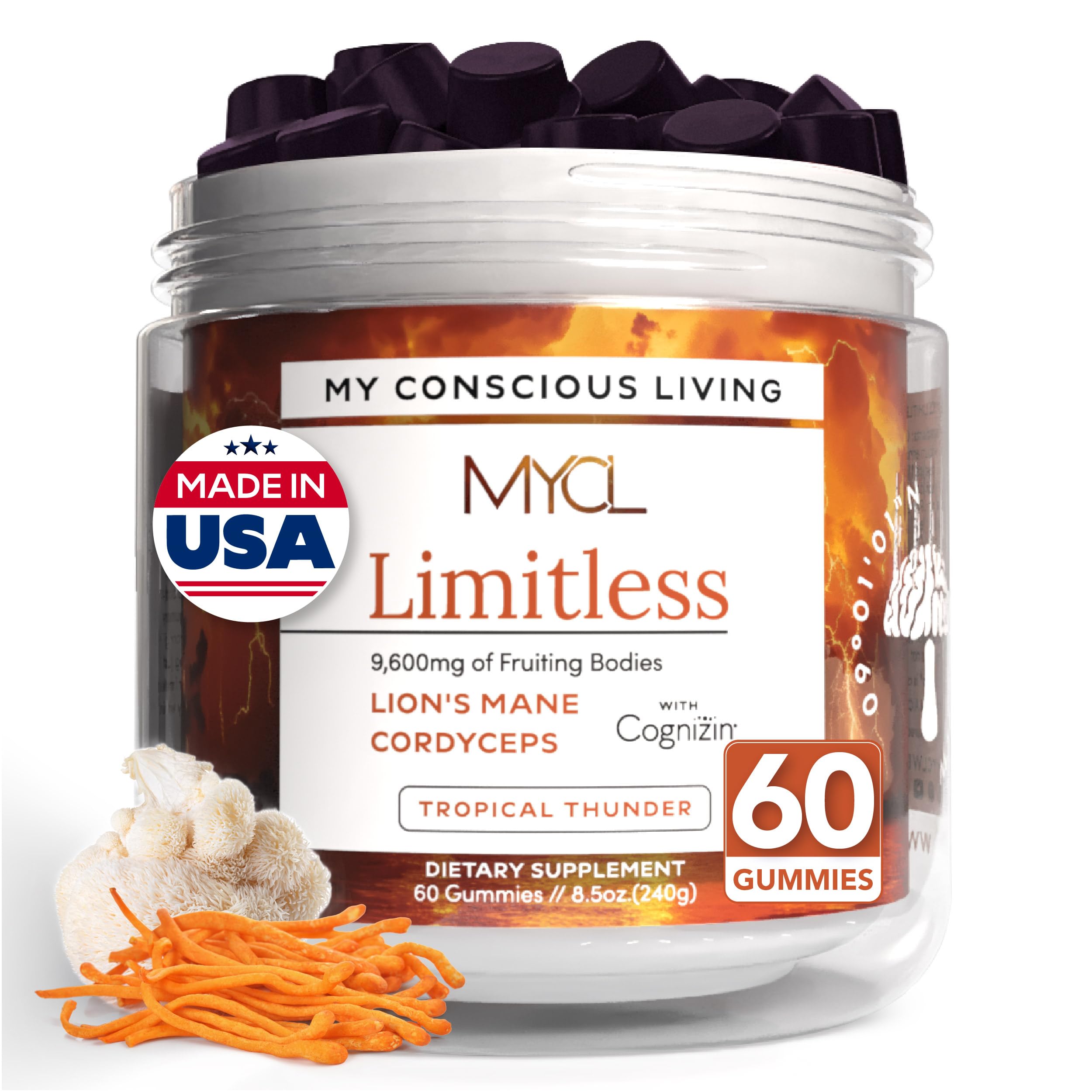 MYCL Limitless Mushroom Gummies | 320mg Lion’s Mane & Cordyceps Fruiting Body + 180mg Cognizin® Citicoline | Focus, Mental Clarity & Energy Support | Vegan, Organic, Gluten-Free | 30 Servings