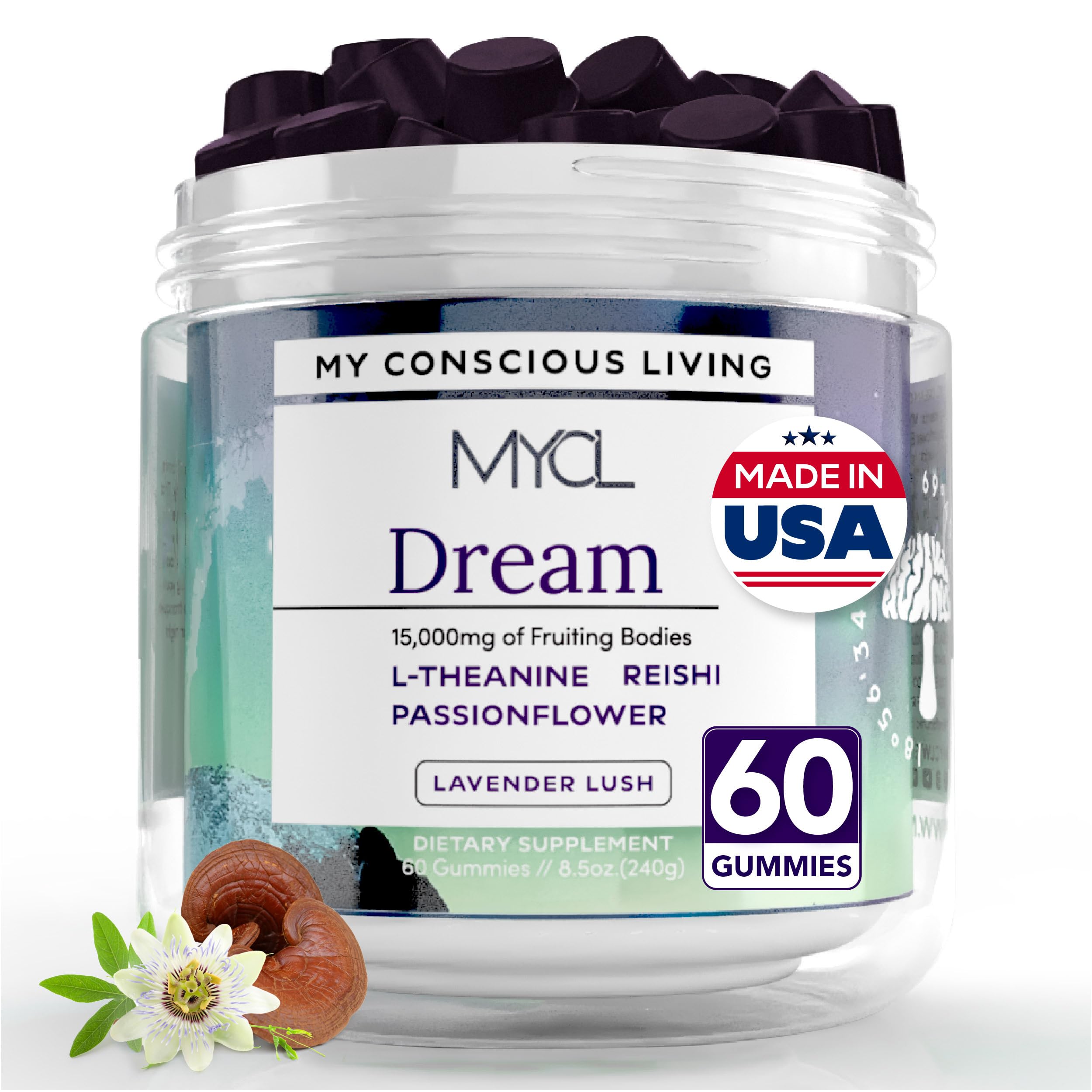 MYCL Dream Mushroom Gummies | 500mg Blend with Reishi Fruiting Body, L-Theanine, Valerian Root & Low-Dose Melatonin | Supports Deep Sleep & Stress Relief | Vegan, Organic, Gluten-Free | 30 Servings
