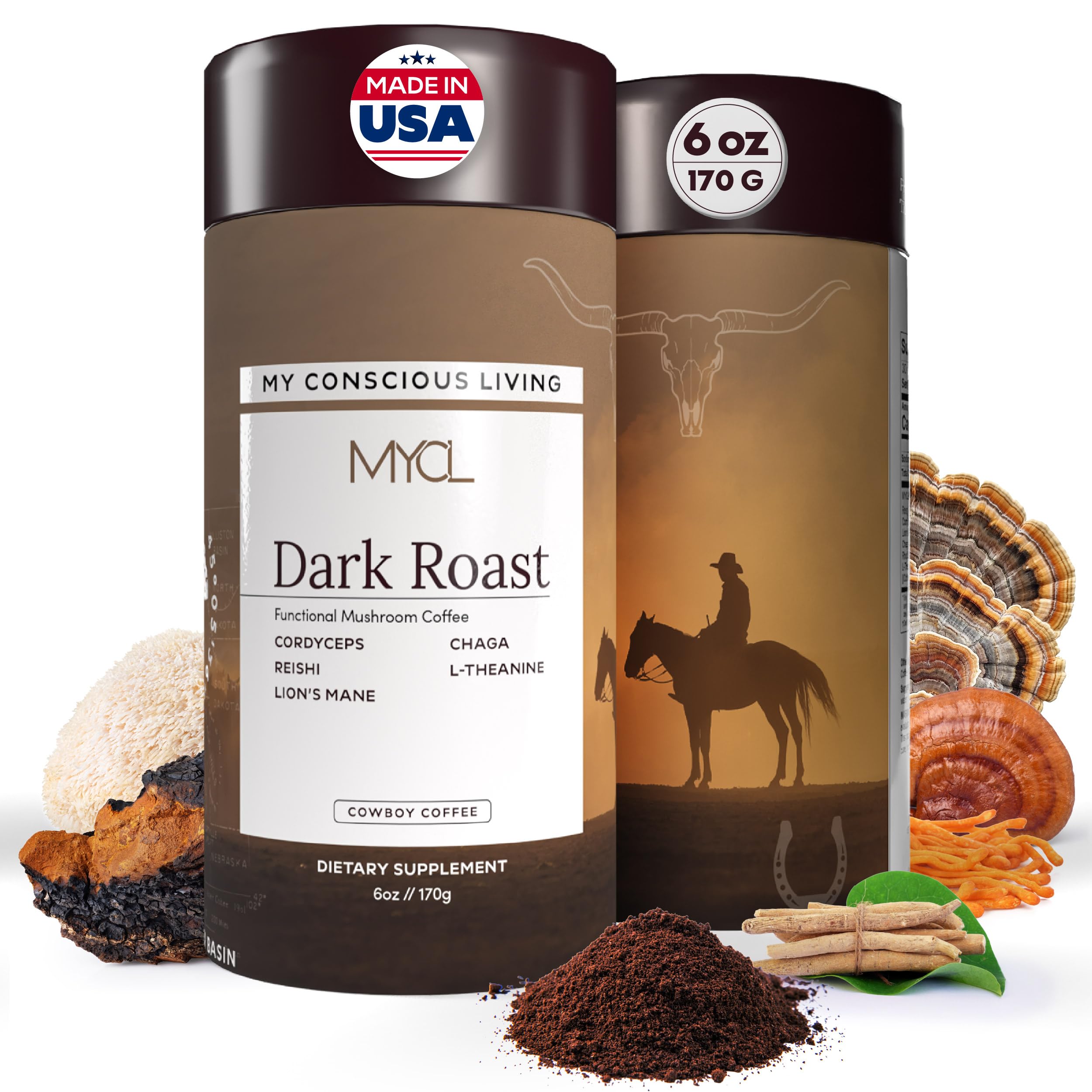 MYCL Organic Mushroom Coffee - Instant Coffee - 1,680mg Fruiting Body - Reishi, Lion’s Mane, Cordyceps, Chaga & L-Theanine - Focus, Energy & Immunity - Vegan, Gluten-Free - Dark Roast, 30 Servings