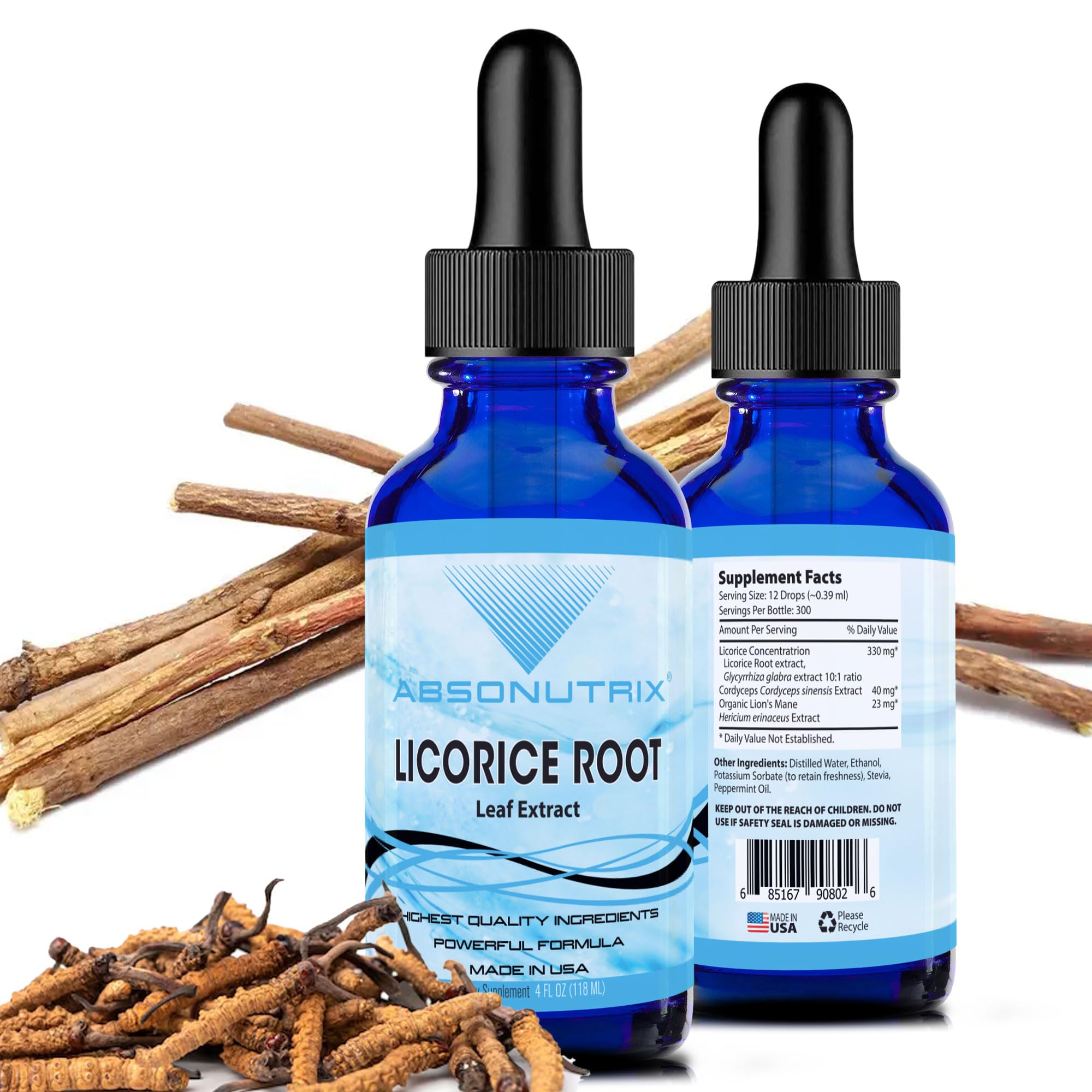 Absonutrix Licorice Root 330 mg, 4 Oz Liquid, 300 Servings, Made in USA, Quick Absorption, Quality Potent Ingredients, Non-GMO, GMP-Certified Facility, Cruelty-Free Products
