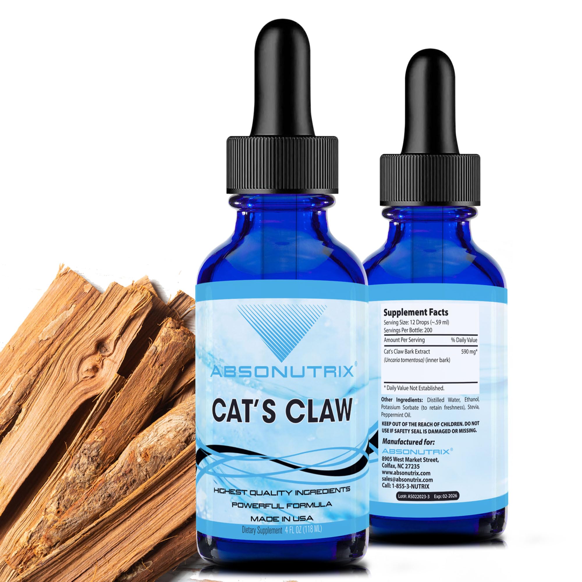 Absonutrix Cats Claw 590mg, 4 Oz Liquid Bottle, 200 Servings, High Bioavailability, Boosts Immunity, Helps Detoxify The Body, Non-GMO, Third-Party Tested, Immune & Joint Support, Made in USA