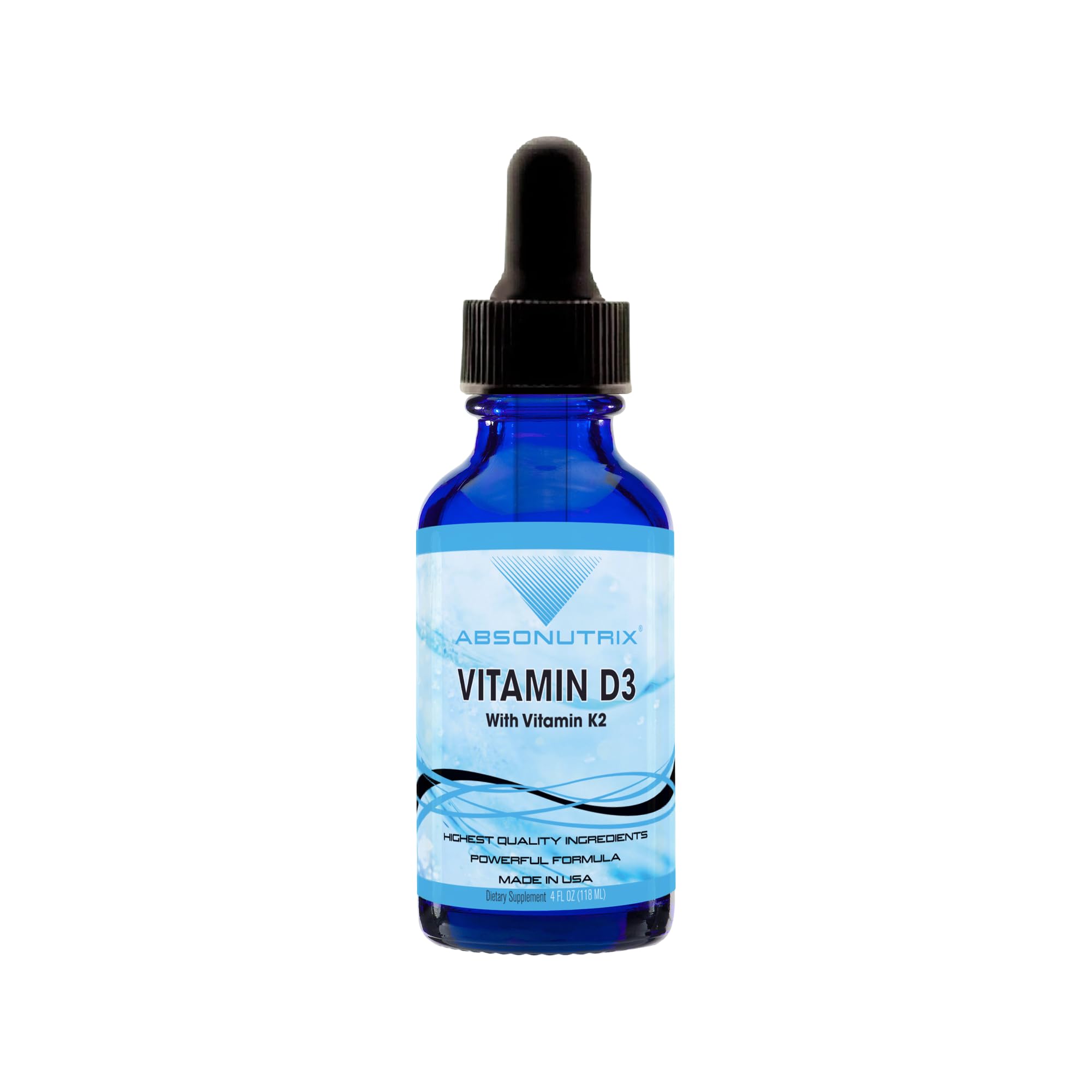 Absonutrix Vitamin D3 K2 Drops, 390mg, 4 Oz Liquid, 302 Servings, Made in USA, Quick Absorption, Quality Potent Ingredients, Non-GMO, GMP Certified, Cruelty-Free Products, Bone Strength Supplements