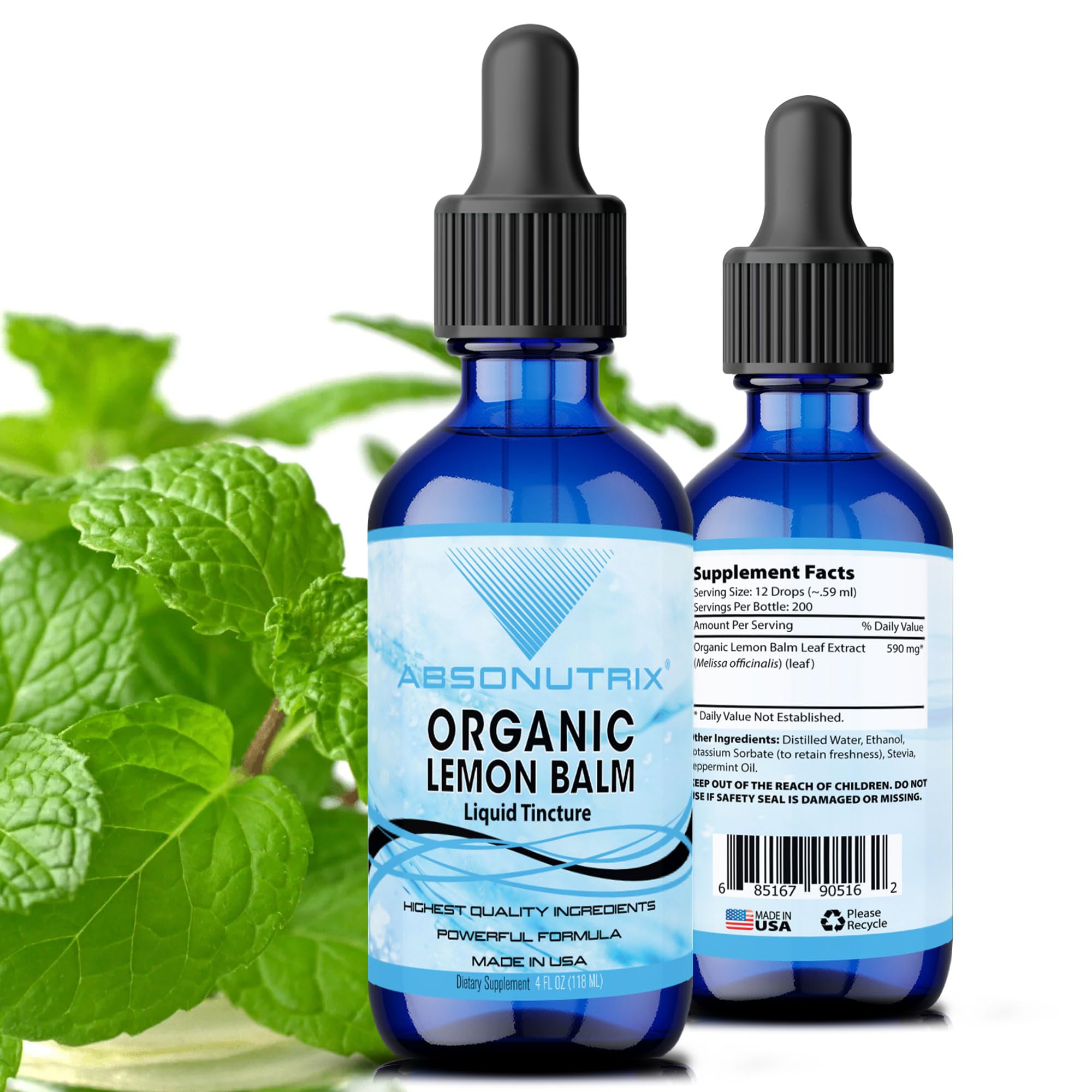 Absonutrix Organic Lemon Balm, 590 mg 200 Servings, Easy Absorption, Third Party Tested, Highly Potent, Made in The USA, Non-GMO, Gluten-Free