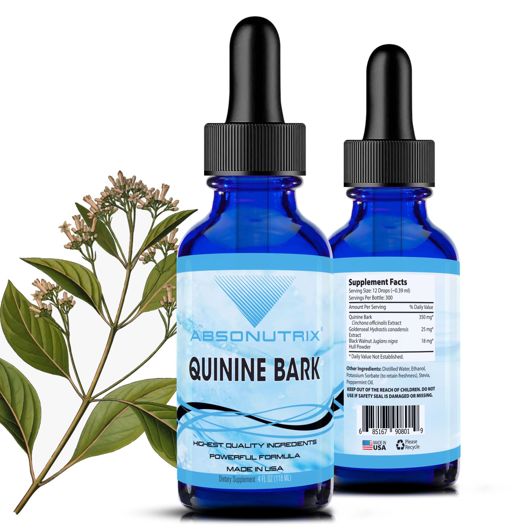 Absonutrix Quinine Bark 350 mg, 4 Oz Liquid, 300 Servings, Made in USA, Quick Absorption, Quality Potent Ingredients, Non-GMO, GMP-Certified Facility, Cruelty-Free Products