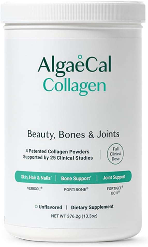 ALGAECAL Collagen: 4 Clinically-Supported Peptides VERISOL®, FORTIGEL®, UC-II®, FORTIBONE®, Anti-Aging Hydrolyzed Collagen Powder, Made in USA
