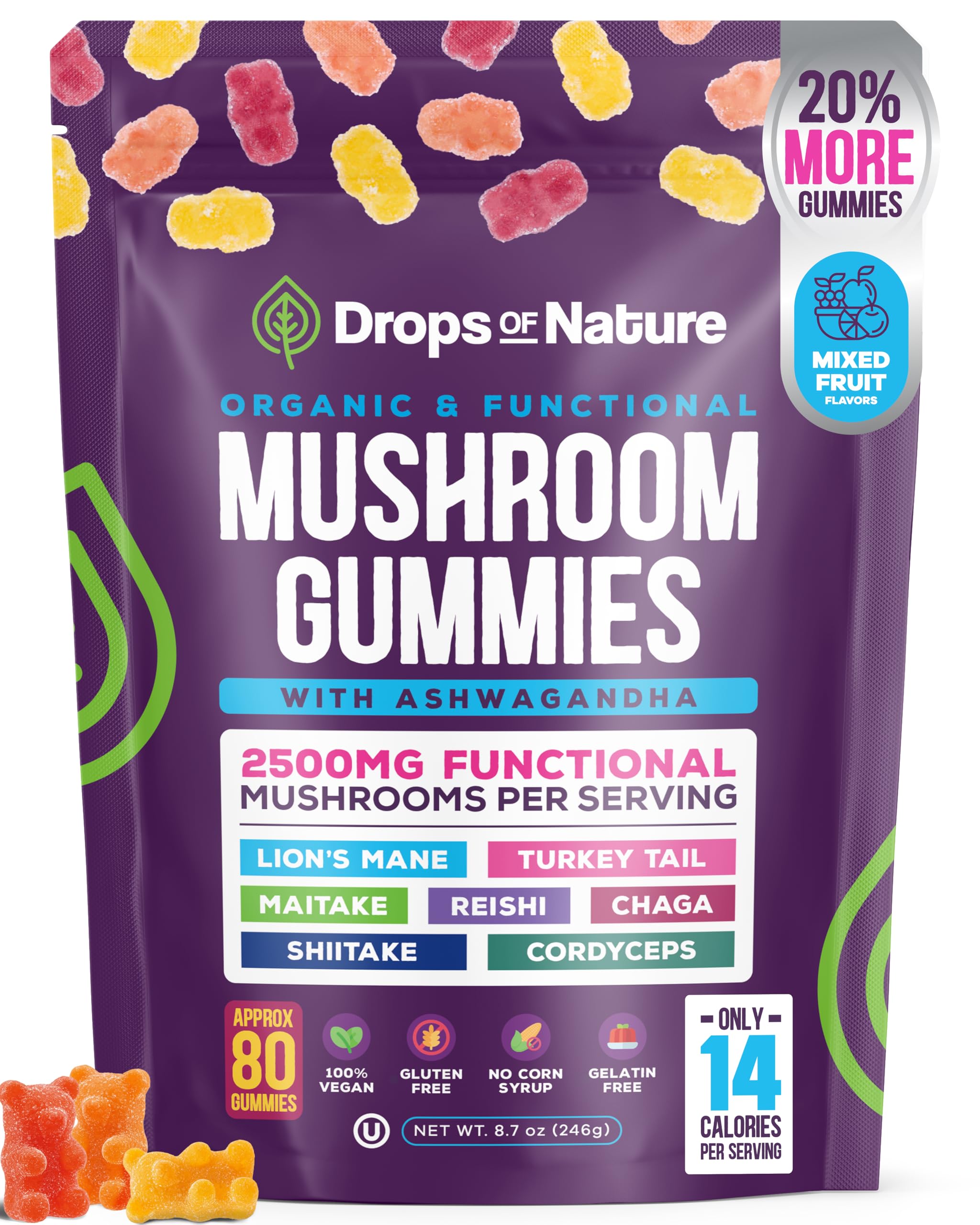 Brand: Drops Of Nature Features: Advanced Mushroom Blend: Includes Chaga, Maitake, Turkey Tail, Shiitake, Reishi, and Cordyceps; enhanced with lions...
