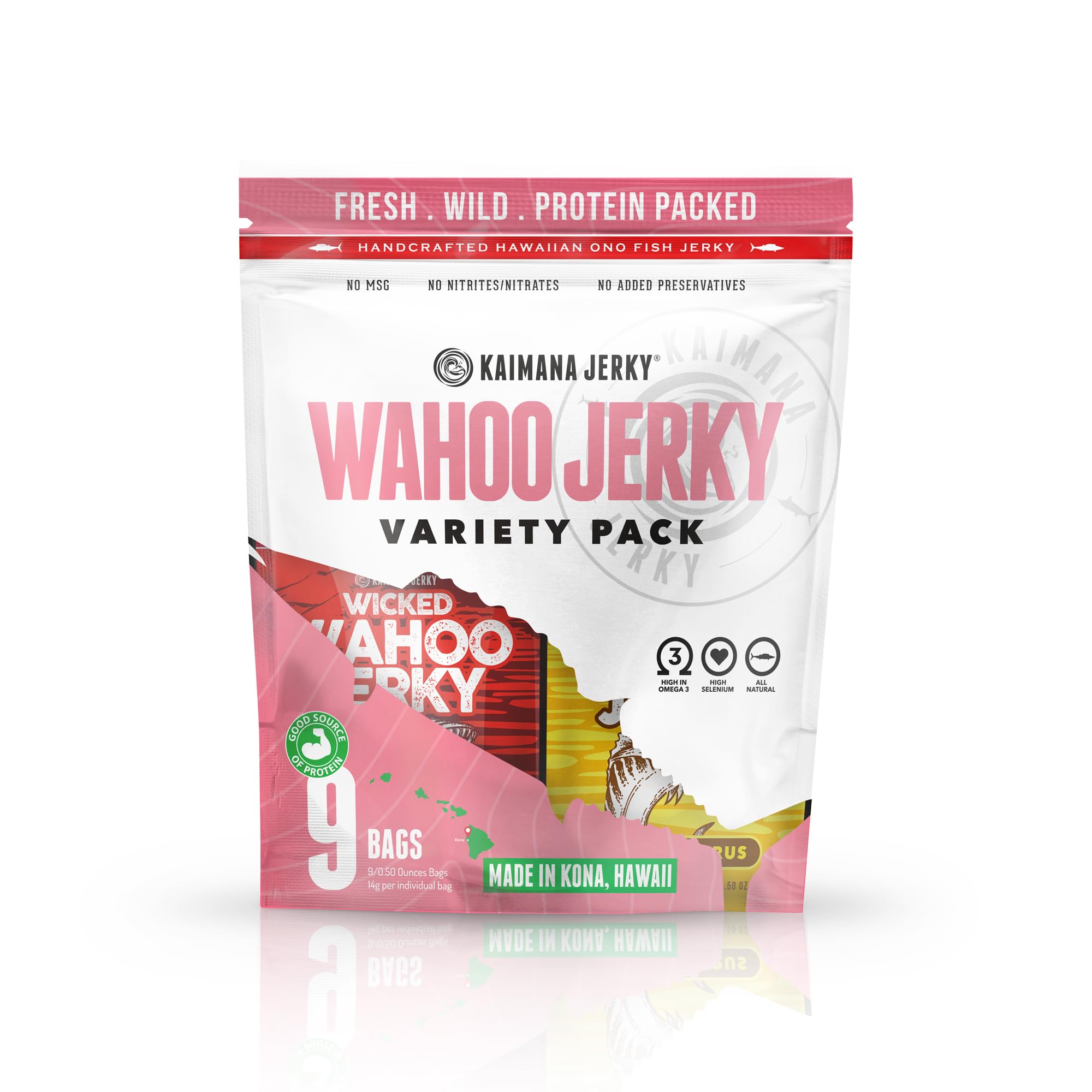 Brand: Kaimana Jerky Features: Gourmet Favorites: Smokin' Hickory O.G, Island Citrus, and Spicy Chili Wahoo Fish Jerky. Sampler pack of...