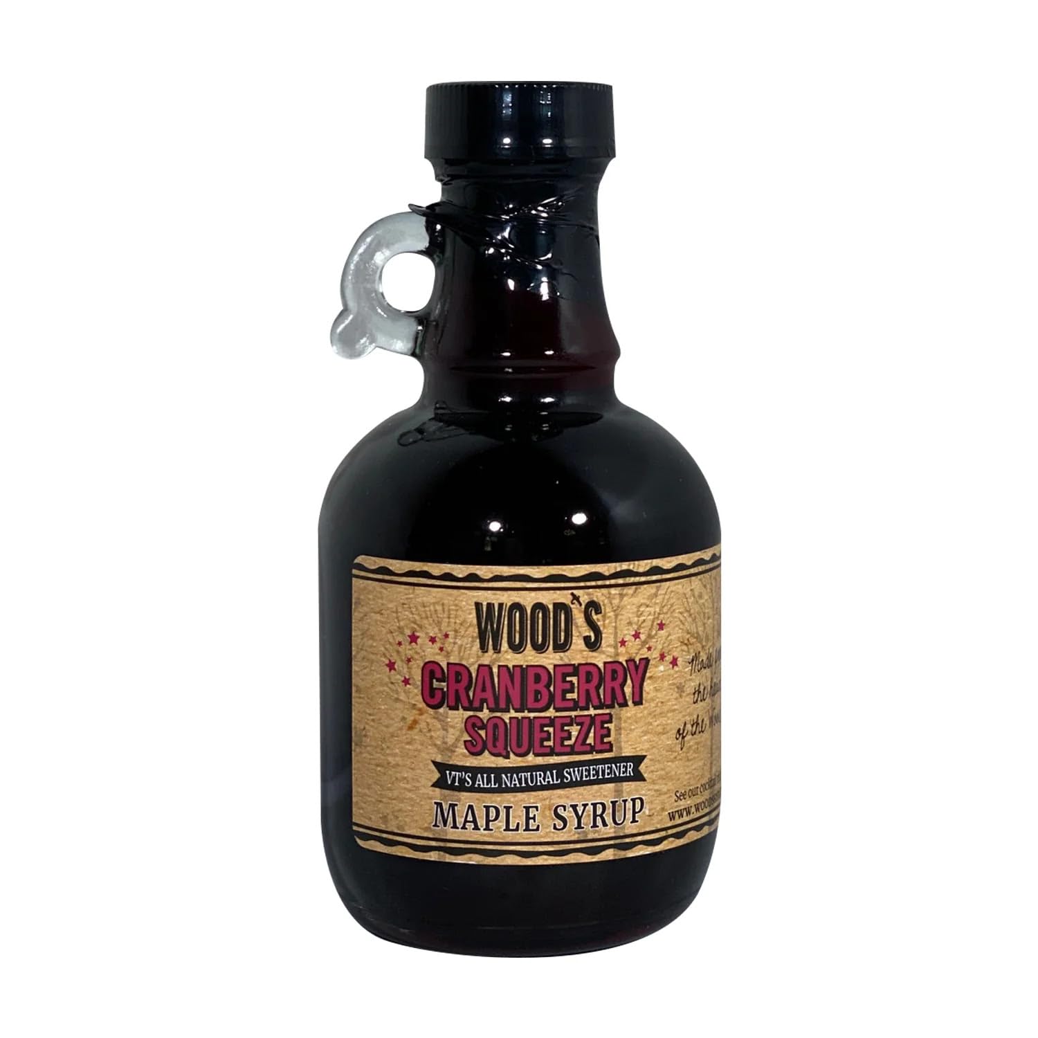 WOOD'S Cranberry Squeeze Maple Syrup – Small-Batch Vermont Maple Syrup Infused with Tart & Tantalizing Cape Cod Cranberries | All-Natural Vegan Sweetener for Pancakes, Cocktails, Glazes & Baking | 8.45 Fl Oz (250mL)