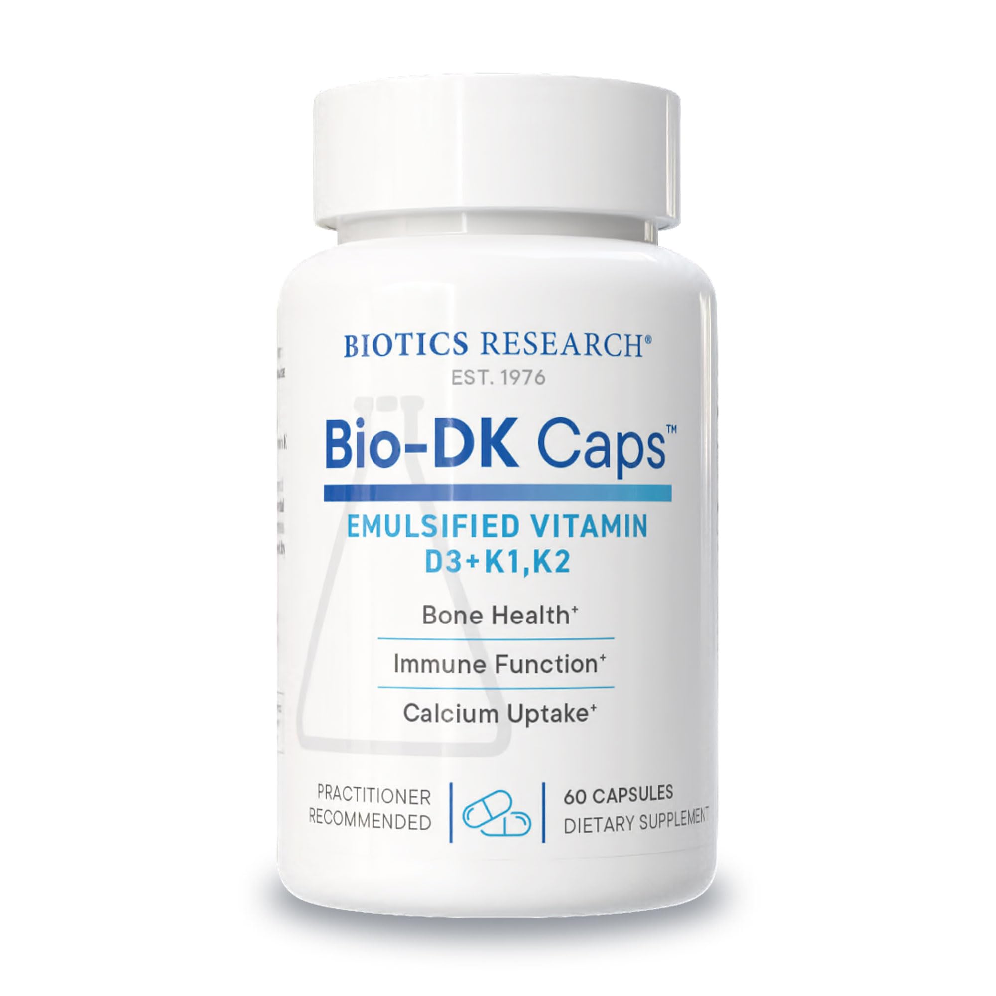 Biotics Research Bio-DK Caps™–Emulsified Vitamin D and K, Vitamin D3 125 mcg & Vitamin K (k1,k2) 550 mcg- MK7– Vitamin D3 K2 K1, Stronger Bones, Musculoskeletal Strength, Healthy Heart & BMI 60 Caps