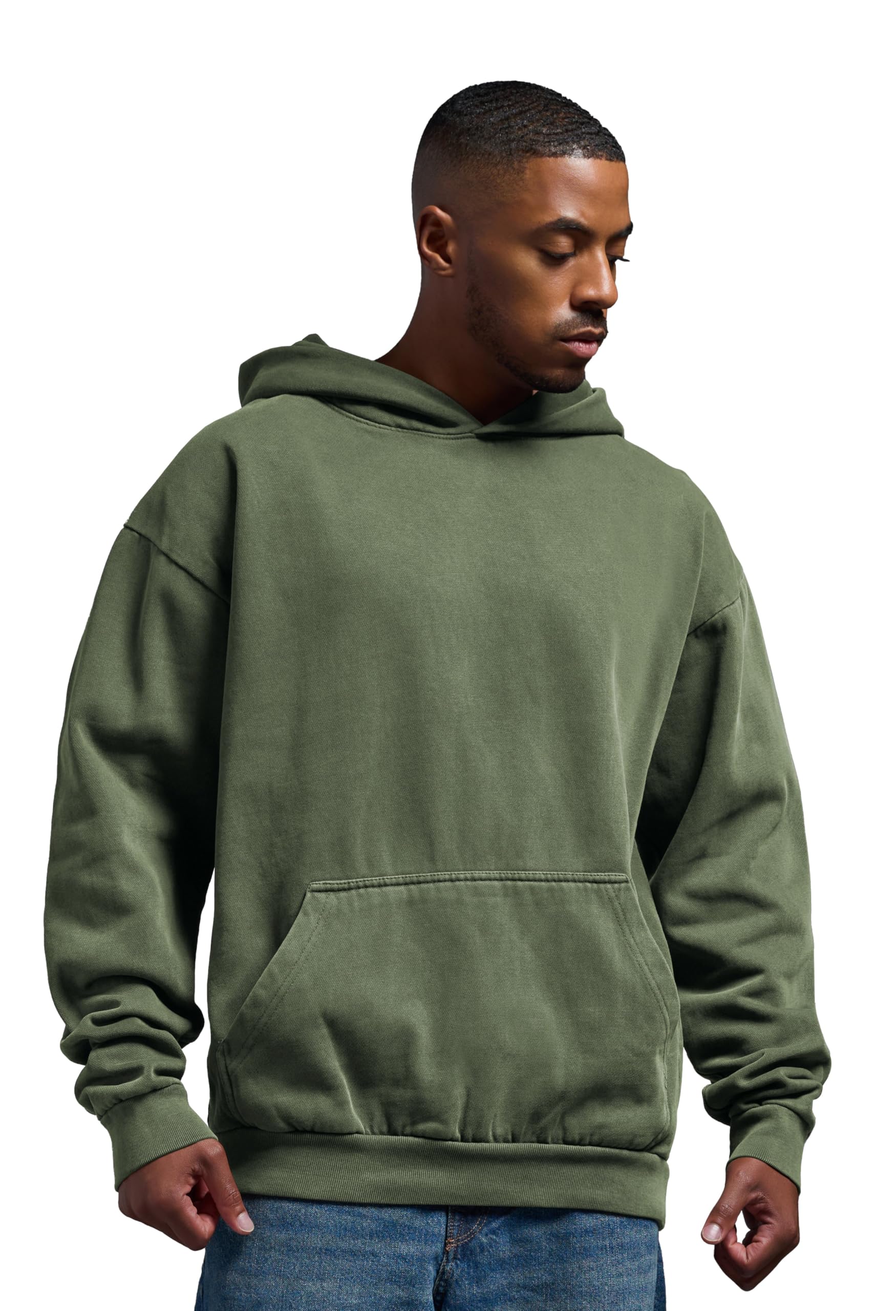 Expert Brand USA-Made Men's Oversized Heavyweight Cotton Pullover Hoodie, Sage, Large