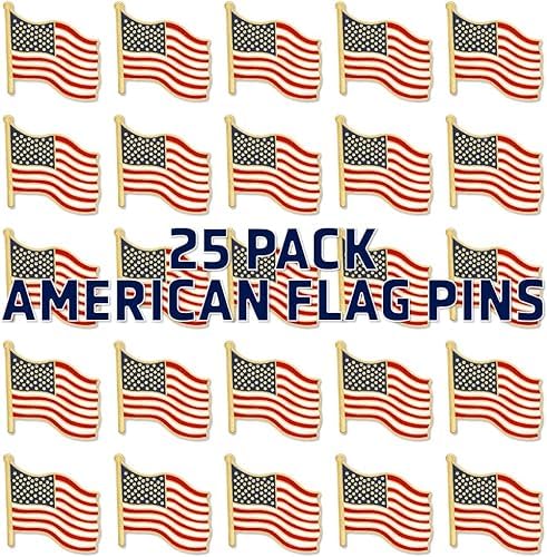 Brand: PinMartColor: Waving American Flag Gold PlatedFeatures: This 25 piece set of American Flag Lapel Pins is perfect for any...