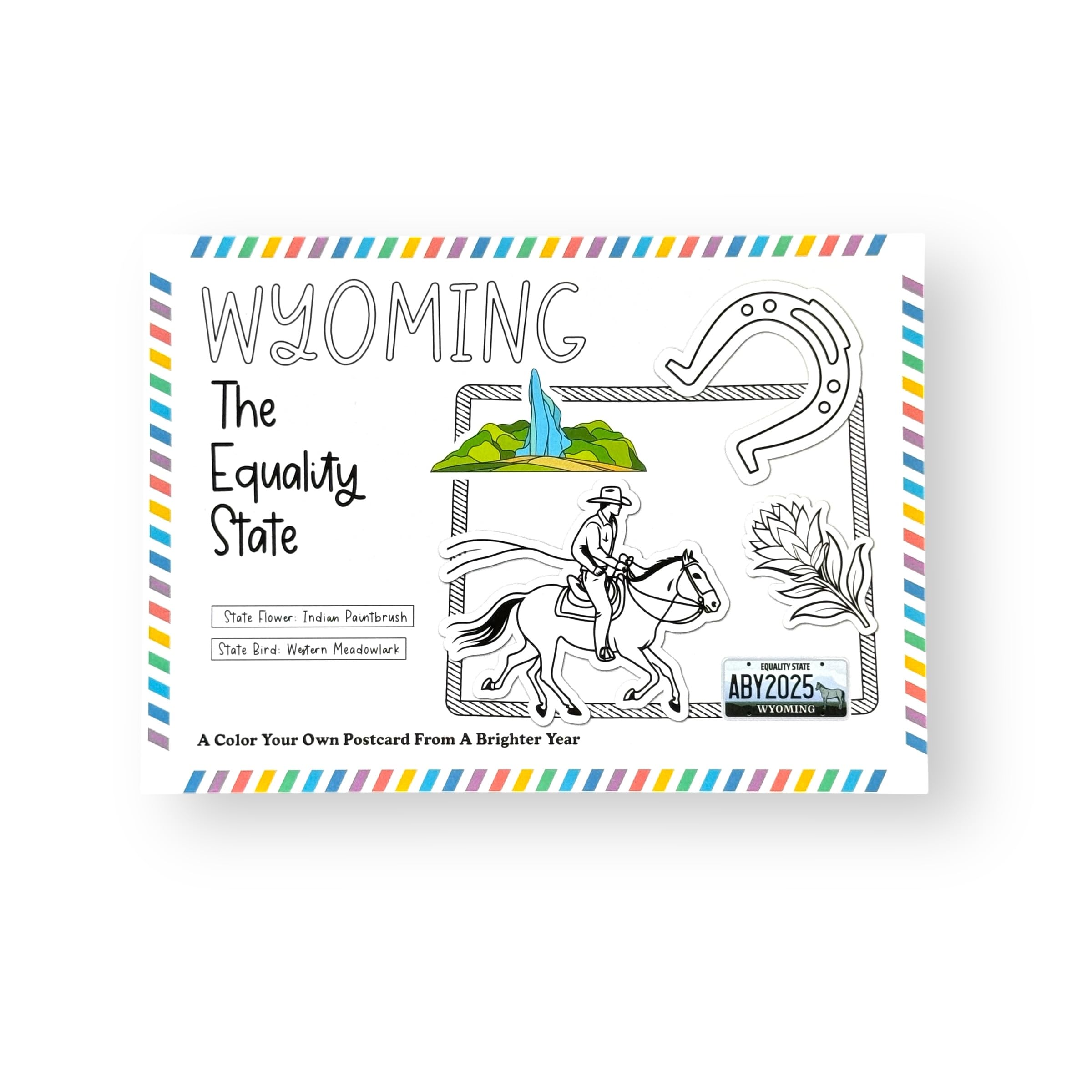 A Brighter Year Color Your Own Postcard - Wyoming State - 5"x 7", Premium Quality, Sturdy Cardstock, Sized for Mailing, Illustrations - Stress & Anxiety Relief